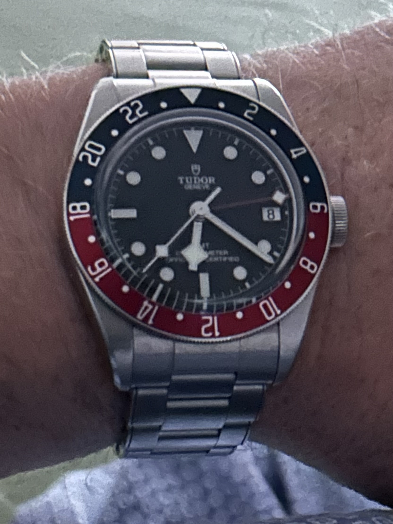 Ik zal binnenkort even een close up maken. Je mag de versie met de zwarte wijzerplaat van mij kopen, want die zet ik morgen te koop. ![]()