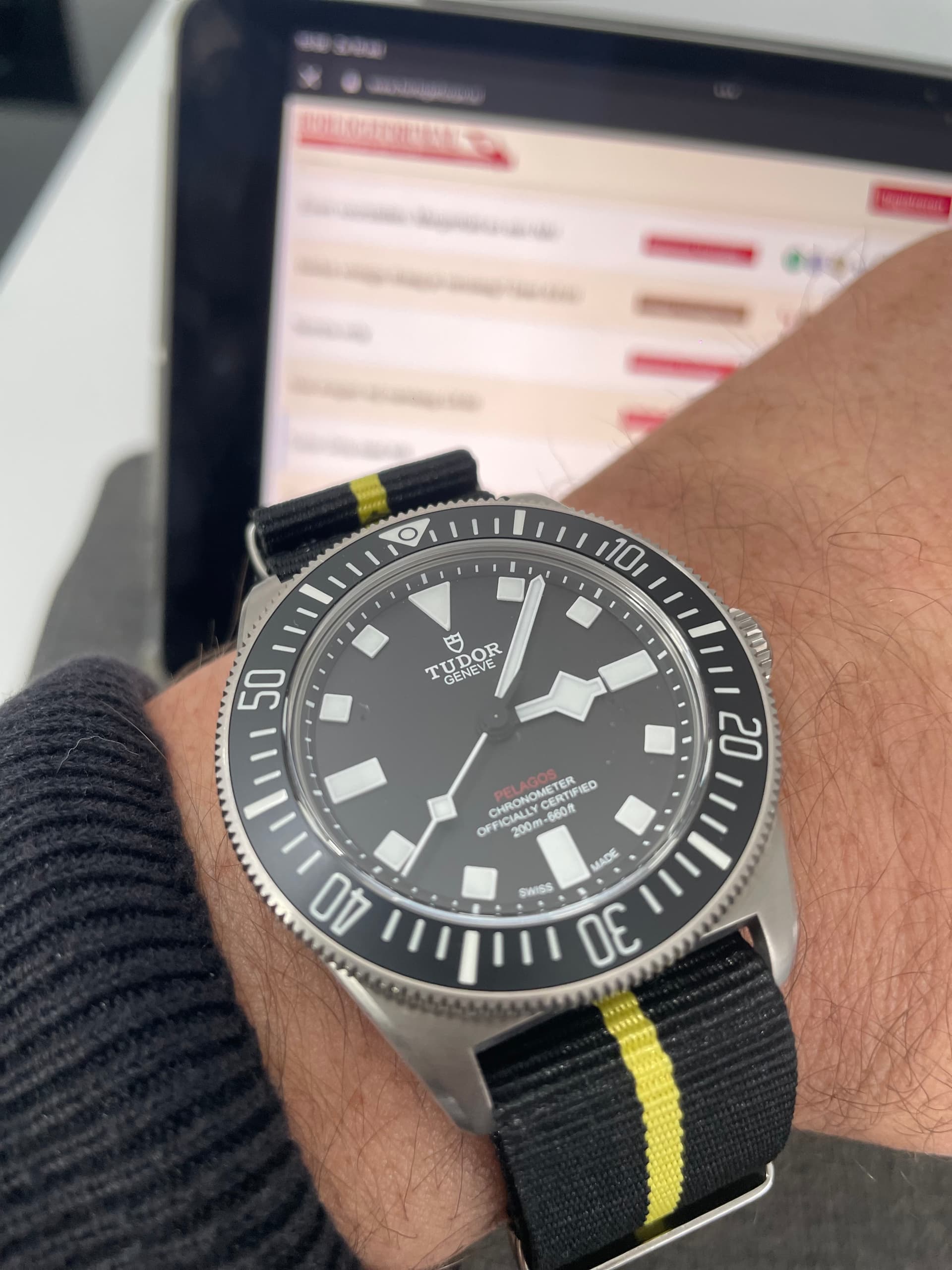 Ik had bij @ElChueco jaren geleden zijn rooie in handen gehad (oude ETA-versie) en die heeft me eigenlijk nooit losgelaten. Onlangs weer een Squale gekocht, die ik na drie draagdagen alweer zat was. Vreemd, maar goed zo gaat dat soms. Deze stond te koop, inruilvoorstel gedaan en een dag later had ik 'm om de pols. ![]()