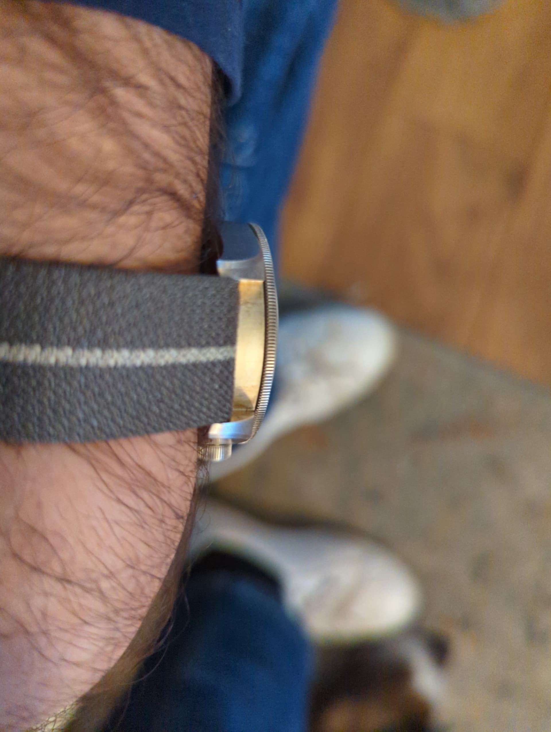 Ik lees even mee over de suggesties. Mijn 925 al wat jaren in bezit. Vertoont zeker enige patina, vooral inderdaad bij de lugs. Stoor me er (nog) niet aan. Kleur van de kast is veel warmer dan bij staal. Beetje patina vind ik juist wel mooi.