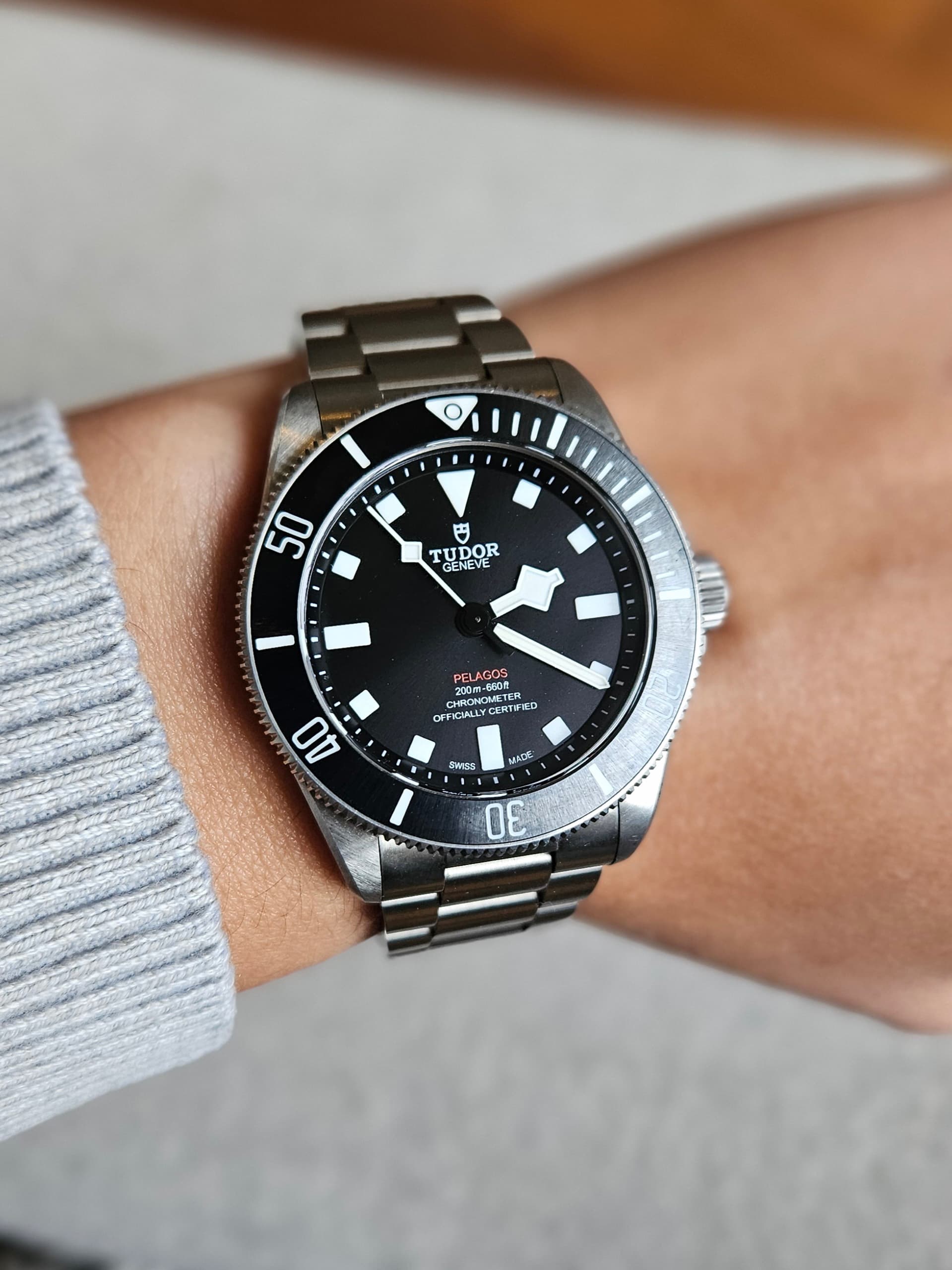 Over een aantal dagen mag ik me hier weer eens melden. Onlangs 2x een blauwe Pelagos gehad, welke ik erg mooi vind (met name op de rubberen band) maar 42mm is me nét wat te groot. Beide keren het horloge vanuit inruil verkregen en derhalve steeds rap doorverkocht.