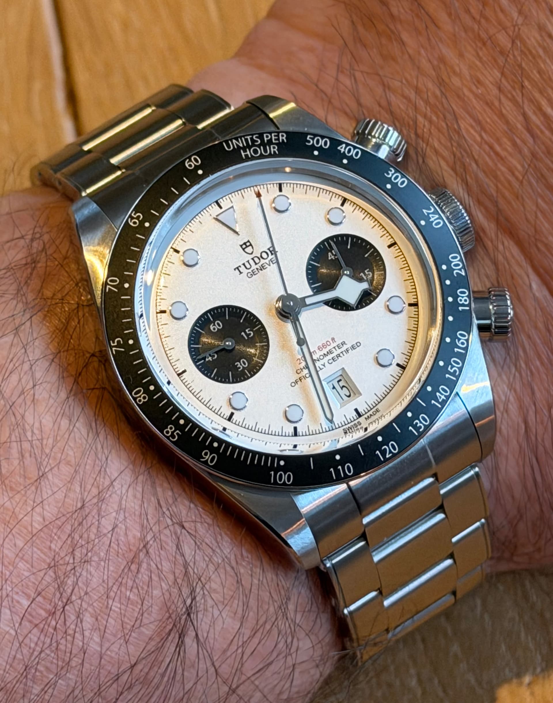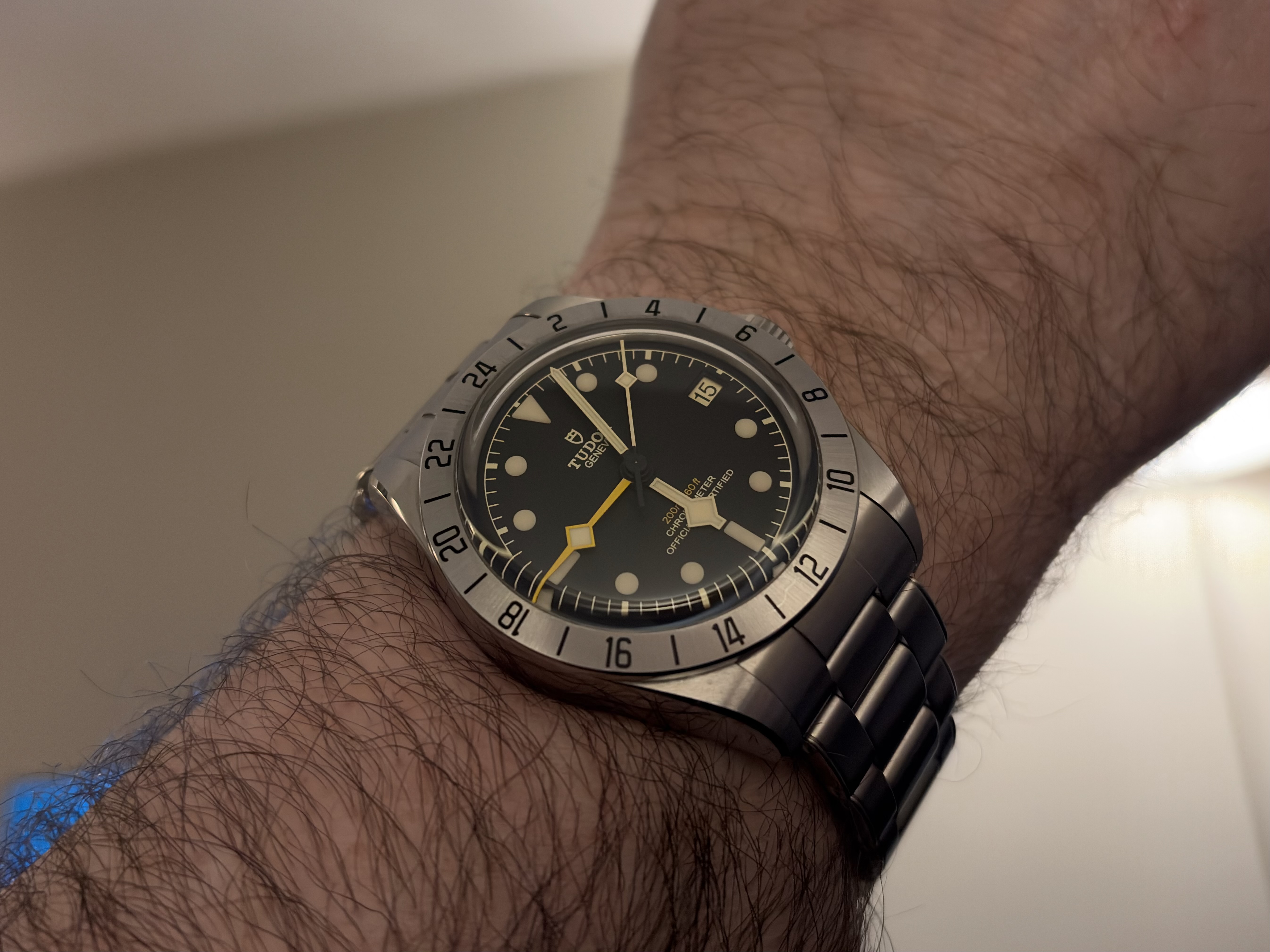 Ah ja op een wat meer platte pols kan ik mij dat zeker wel voorstellen. Al blijf ik het al met al zeer meevallen met ‘die dikte’. Bij de GMT vond ik dat wel weer behoorlijk in het oog springen, ook al was die 41mm breed.