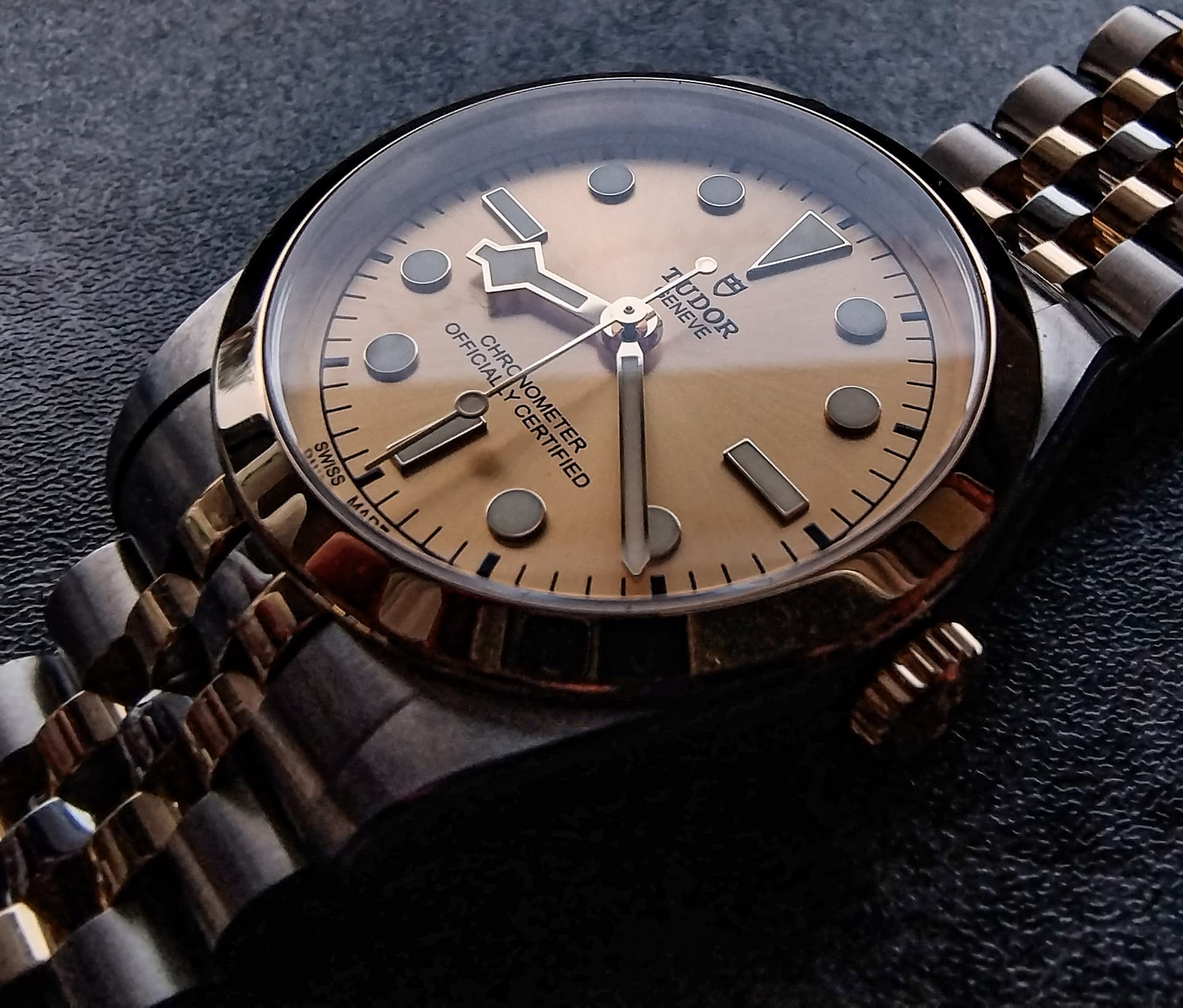 Combinatie van Uncle Seiko Jubilee met een T fit clasp en nog Datejust end links begrijp ik. Mooie combinatie als je een witgouden bezel hebt.