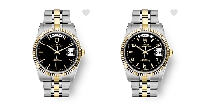 Lijkt wel alsof ze op de website enkel de platen met diamanten kortere wijzers hebben gegeven, terwijl de platen met cijfers dit in het echt ook hebben.