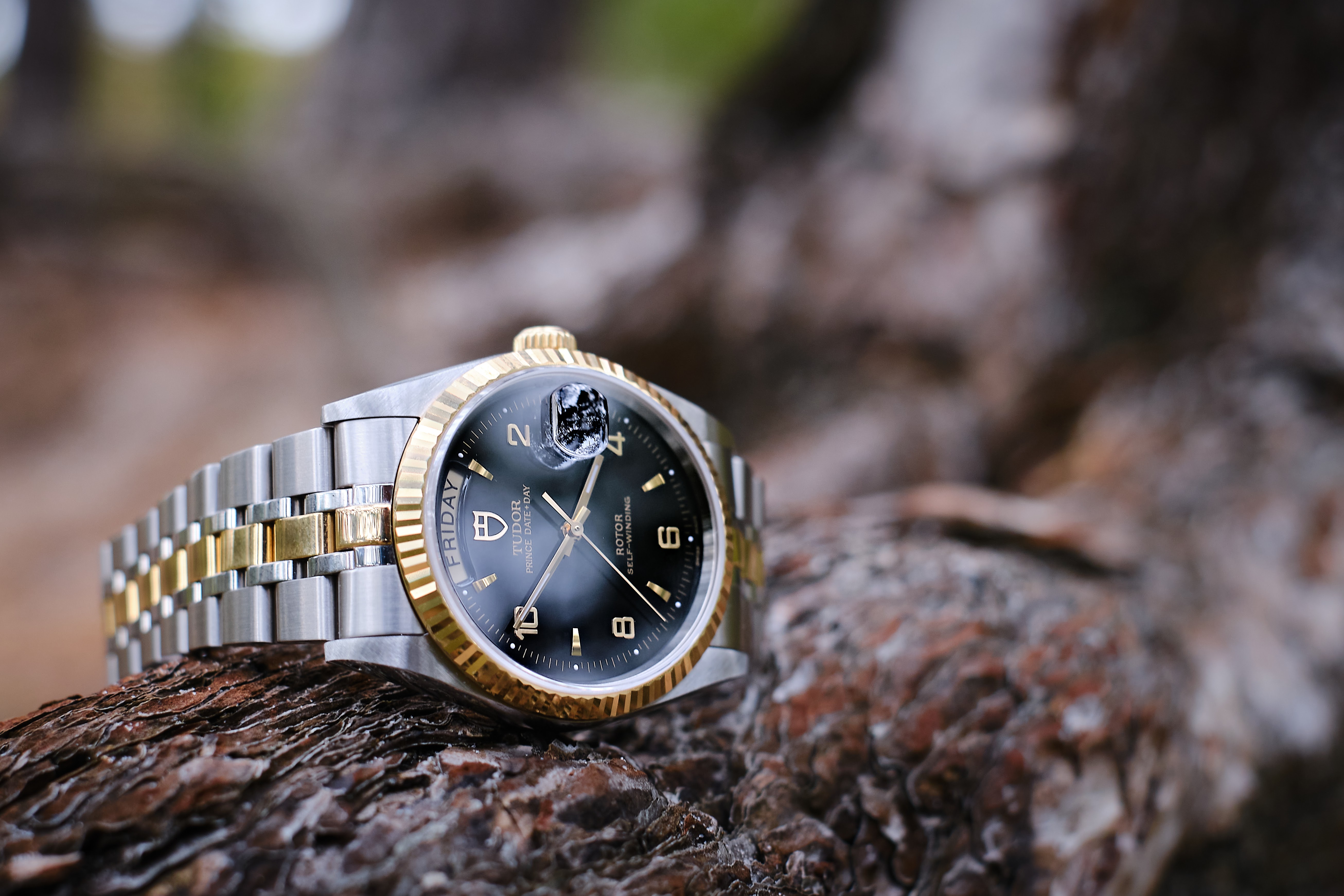 Nieuwprijs met import lag toch wel wat hoger van de mijne. De two tone zat rond 2300 en de wit gouden met zwarte plaat ging rond of over de drie. Deze modellen worden niet meer nieuw geleverd. Beetje inflatie. Dus zo gek zijn de prijzen nu toch niet?