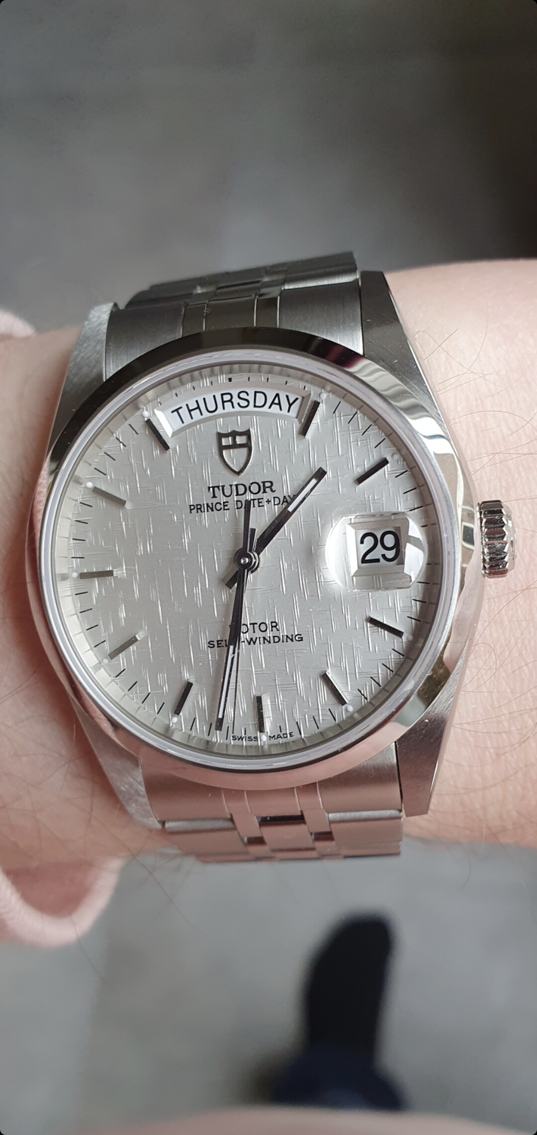 De nieuwe aanwinst ! Heel blij mee. Tot dat ik de stalen band op maat gemaakt heb draag ik hem even op leer.