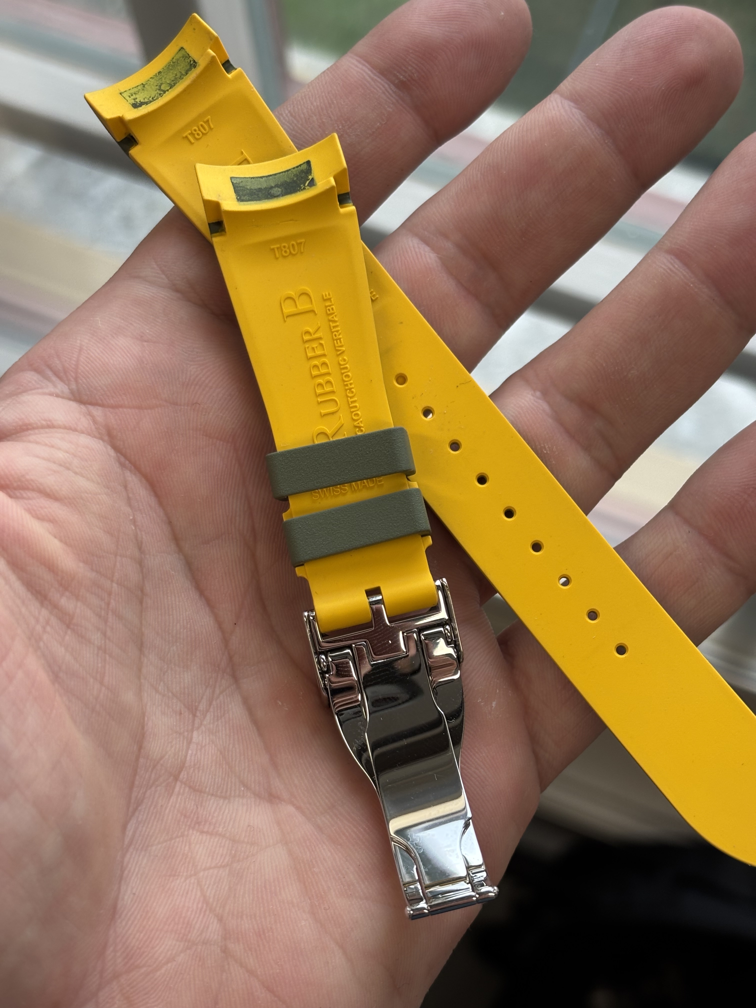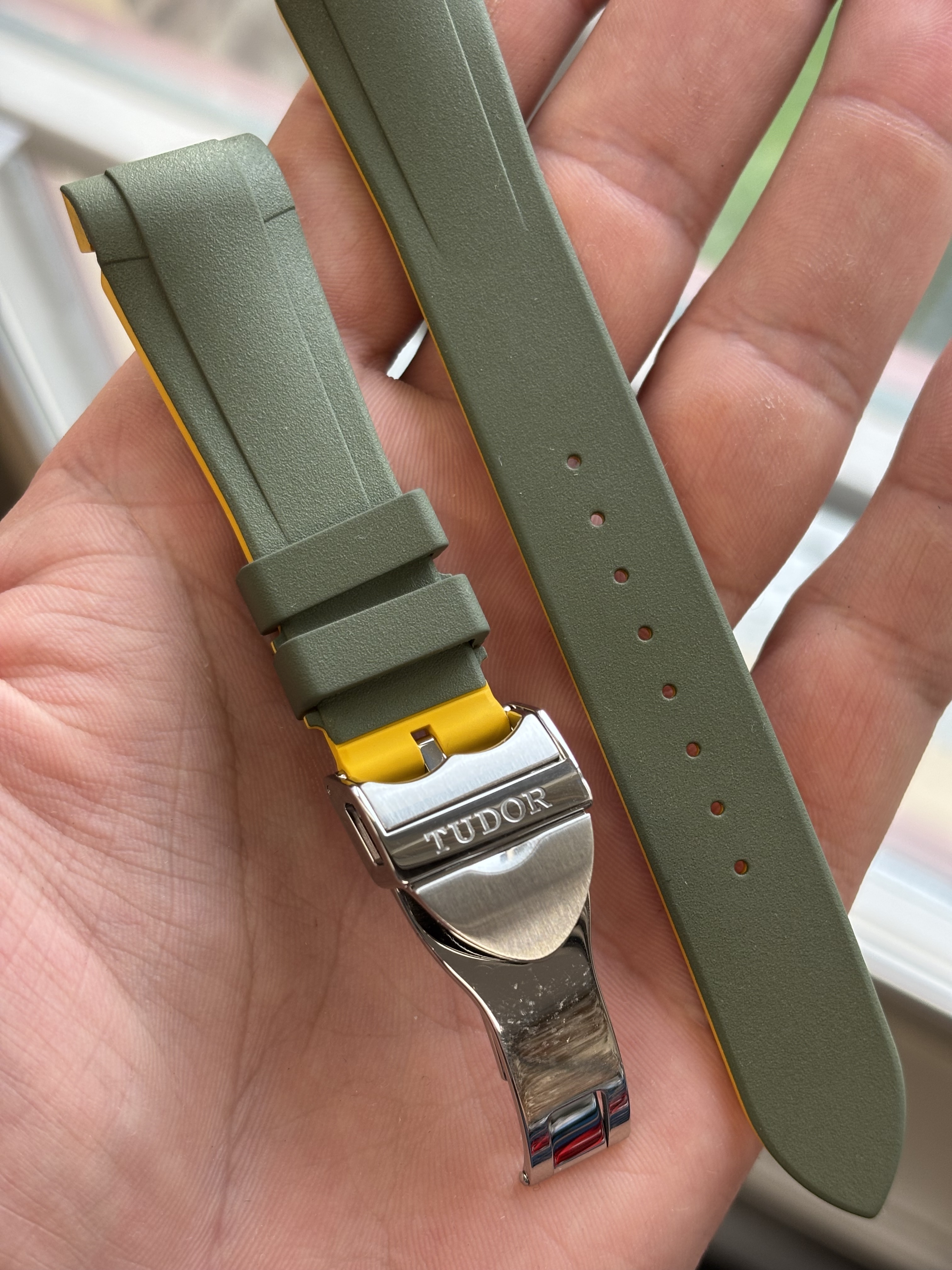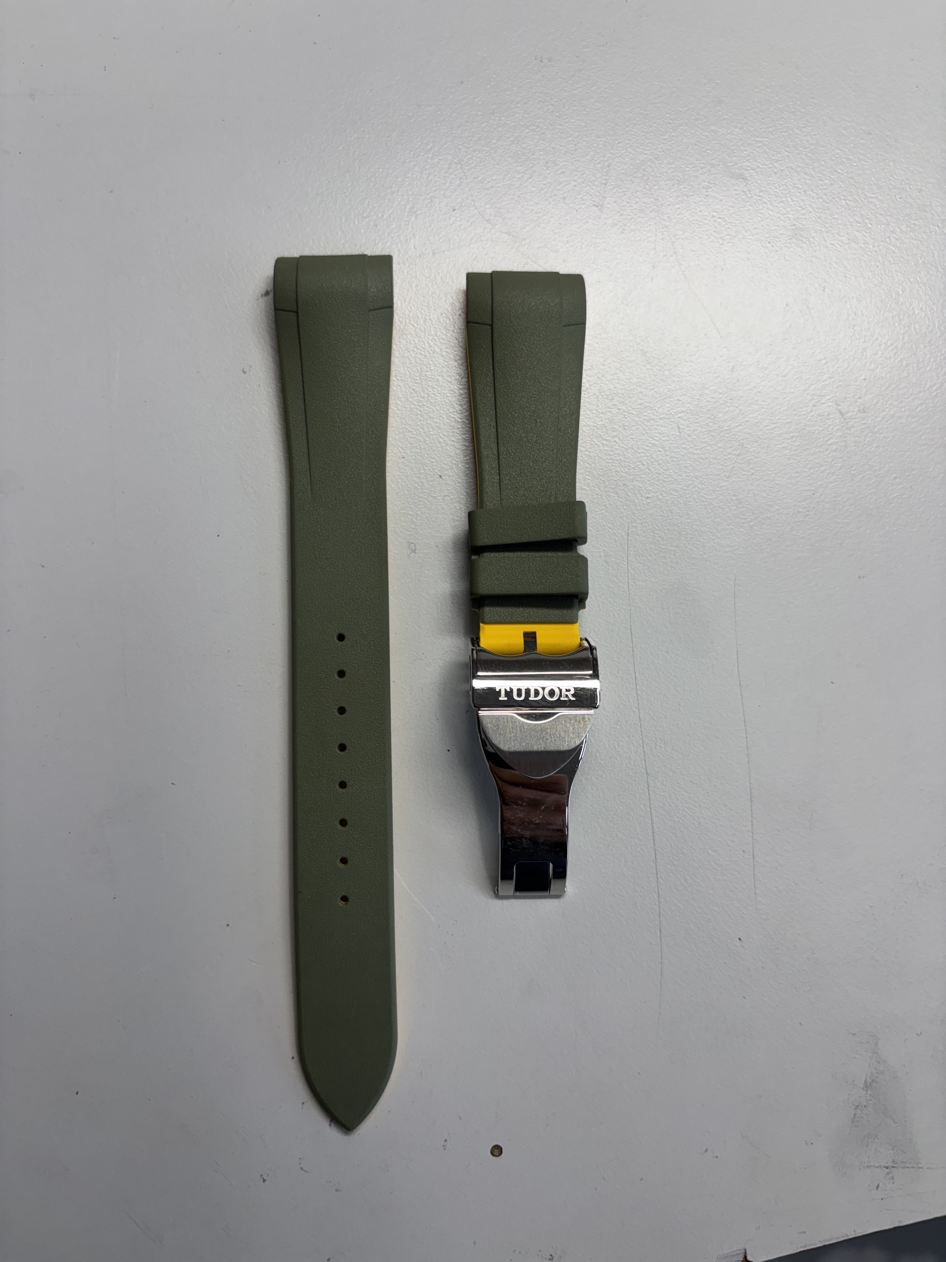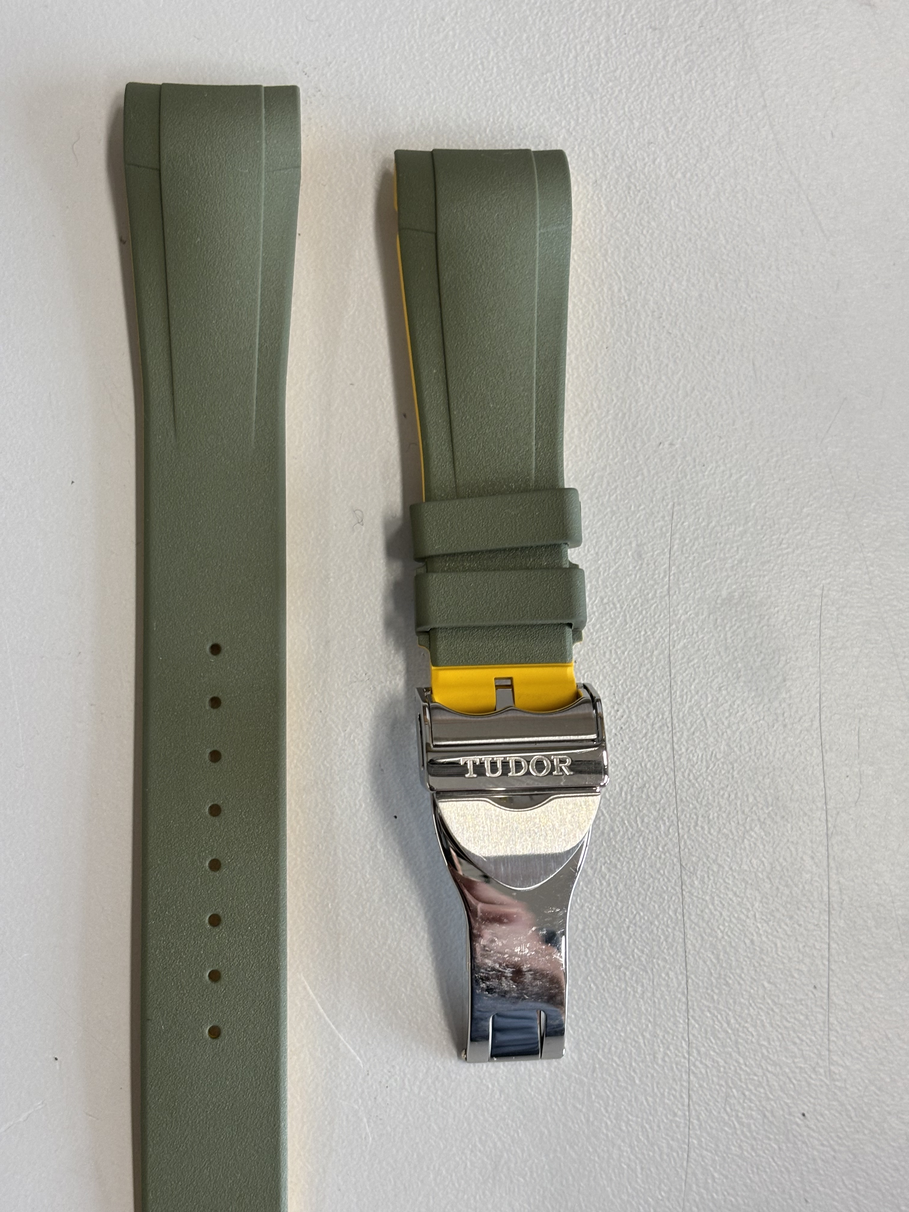 Rubberen band van het merk RubberB bedoeld voor de Tudor Pro. Met daaraan vast een Originele Tudor vouwsluiting.