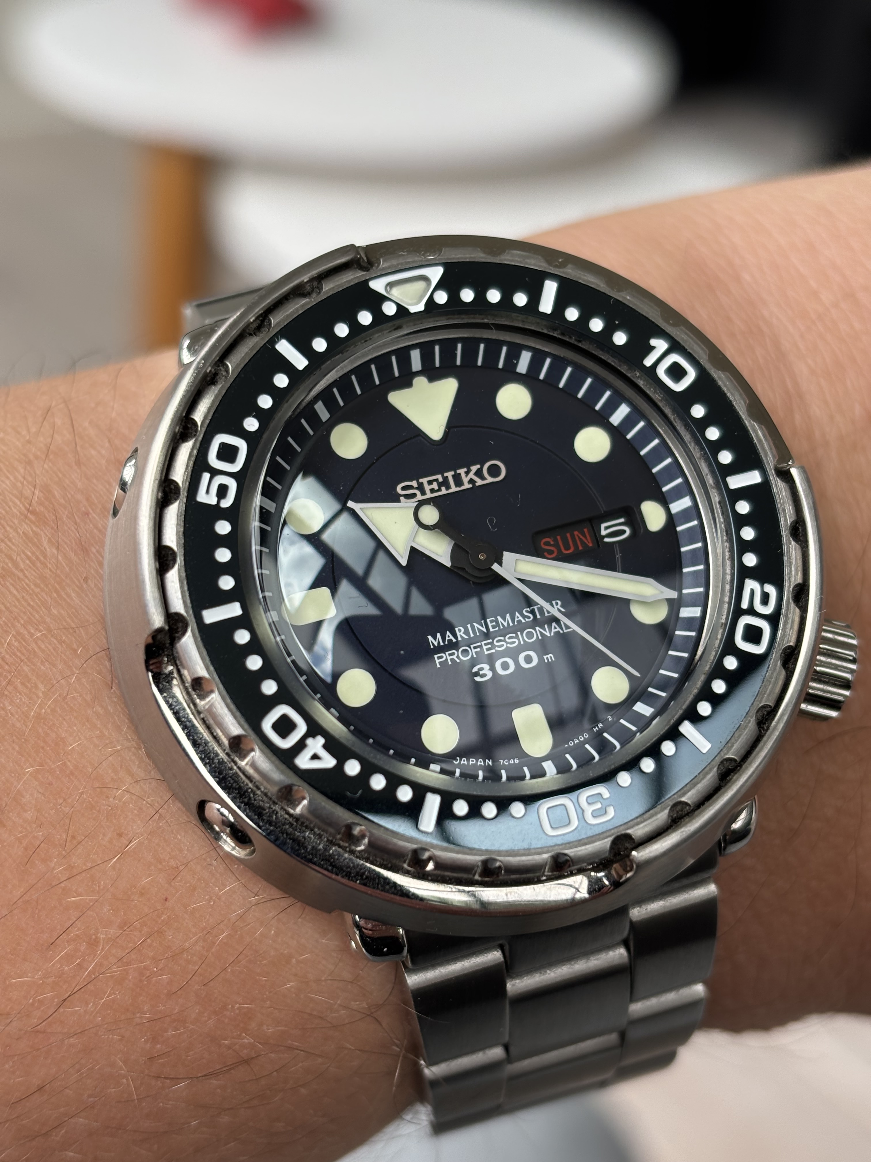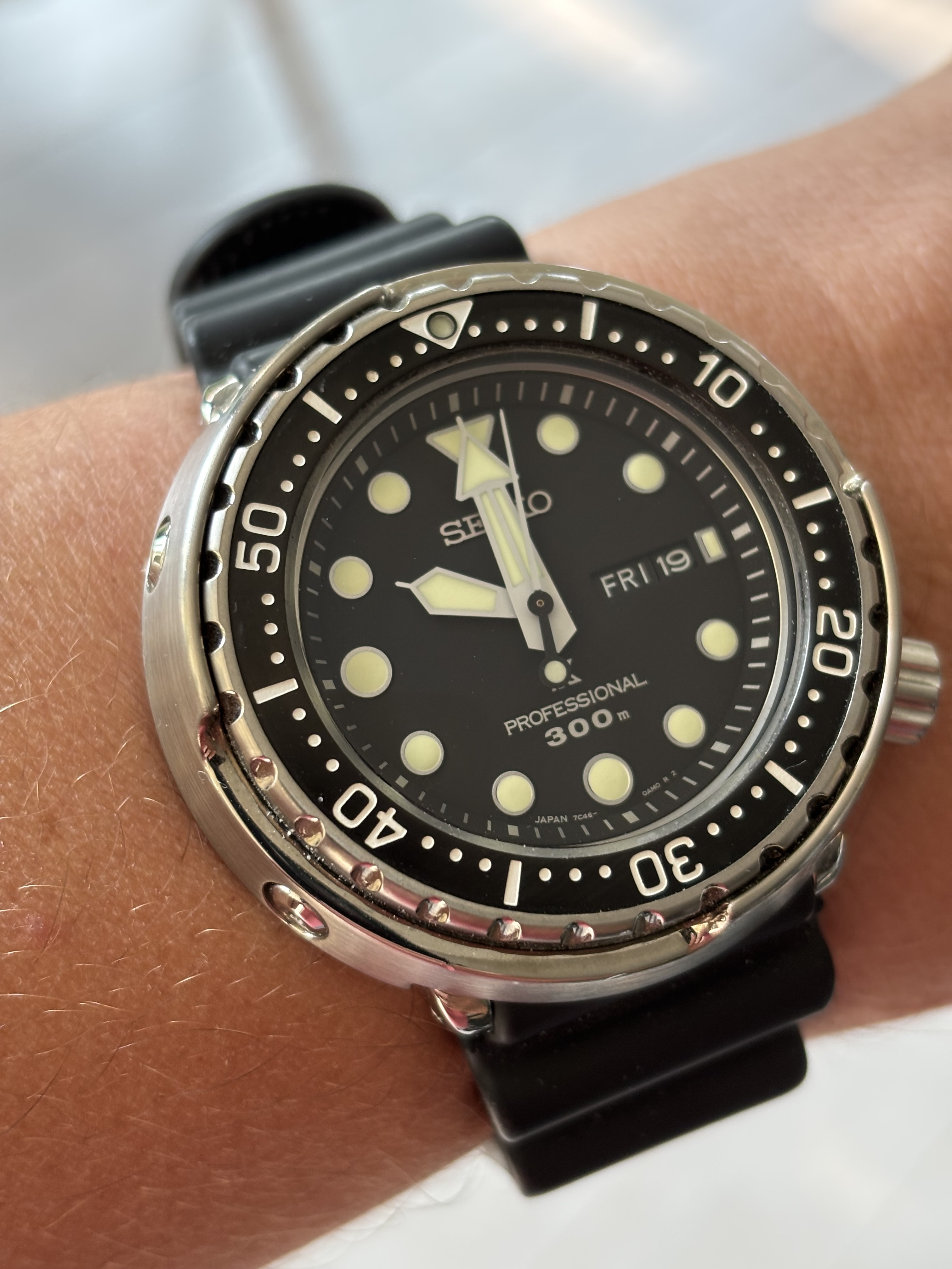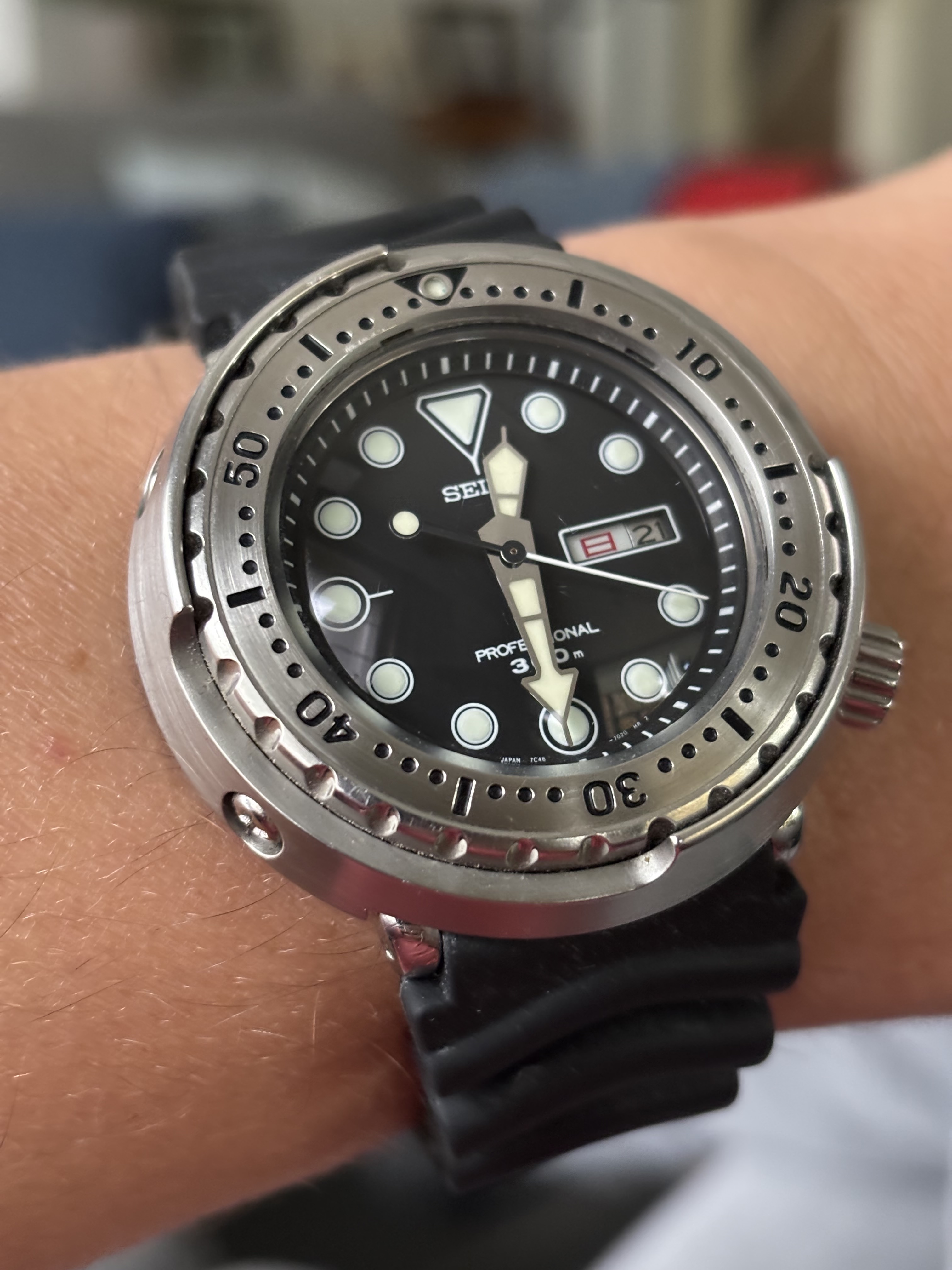 De wijzerplaat geeft aan 6R35 voor het uurwerk, het kastdeksel geeft aan dat het een 4R35 (al een ander uurwerk), modelnummer 04Z0 is, en dat zou weer een SRPG59 zijn. Die heeft een ijsblauwe wijzerplaat met penguin voetstappen en heeft “monster” wijzers.