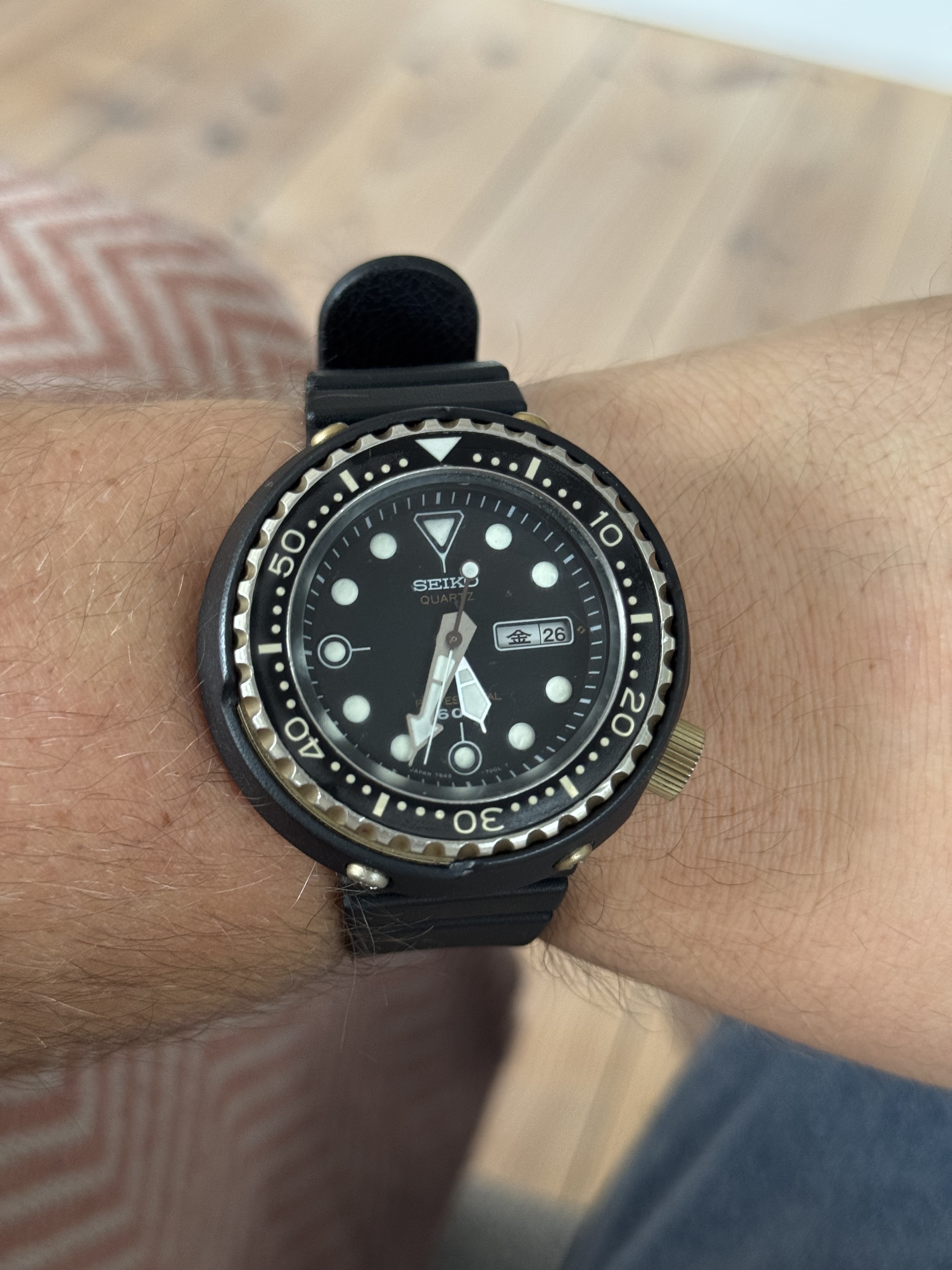 Gisteren was ik ff langs bij Rob. Uurwerk voor me bijgesteld en bandje meegenomen. Heerlijk spul die banden met pen. Met deze ga ik idd het water niet in