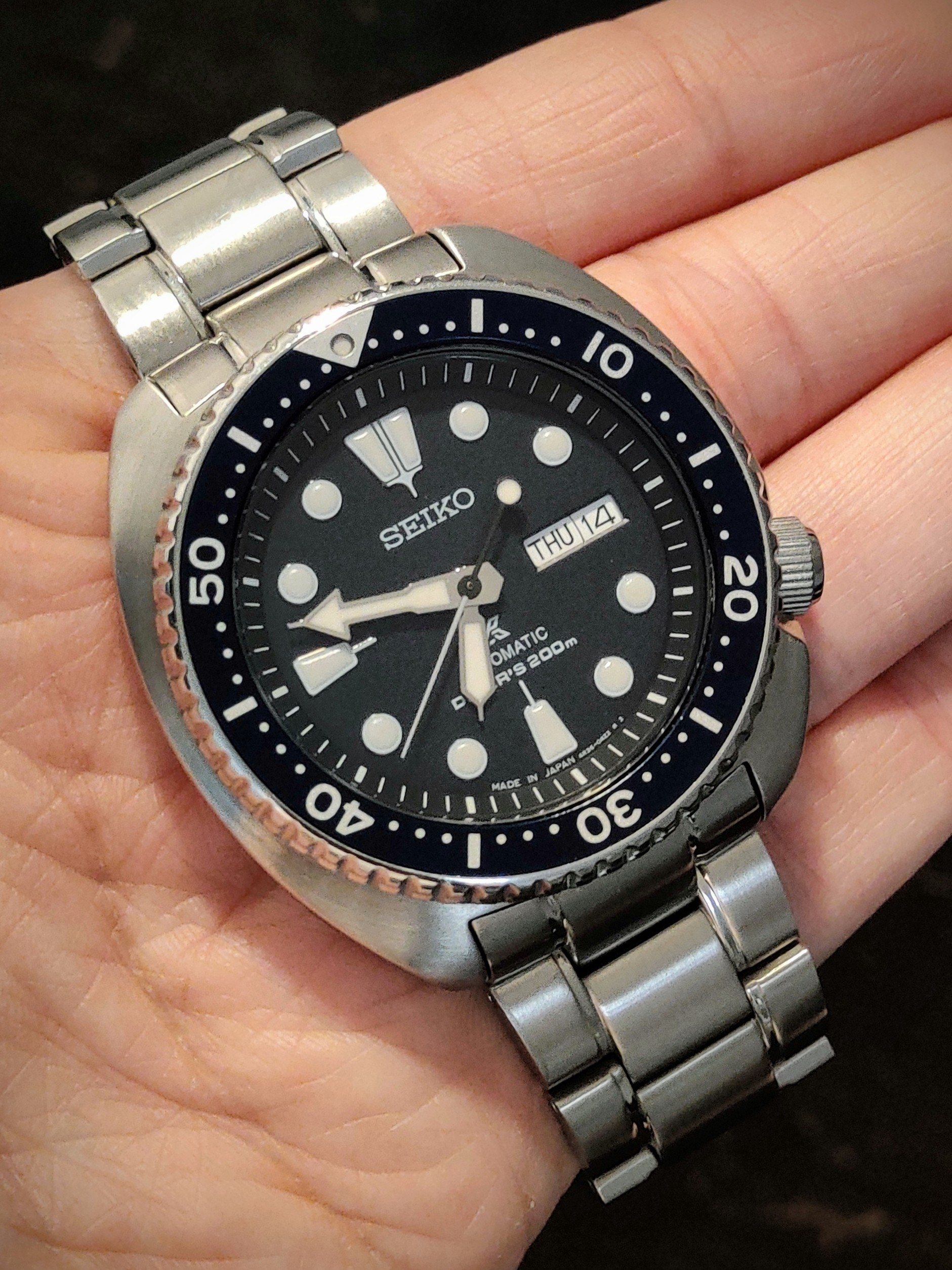 . De end-links van de stalen band blijven een beetje speling houden t.o.v. de kast, maar ik in reviews zie ik dat dit ook bij Seiko duikers in het hogere segment voorkomt. Dat stelt toch gerust op de een of andere manier