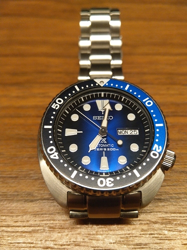 Vanaf vandaag probeer ik de OEM Seiko Turtle band uit. Zit fijn en benadrukt de toolwatch look. Ik denk dat ik de waffle mooier vind staan, maar het is leuk om de originele band erbij te hebben, zeker omdat ik erover nadenk om de originele stalen band te verkopen…