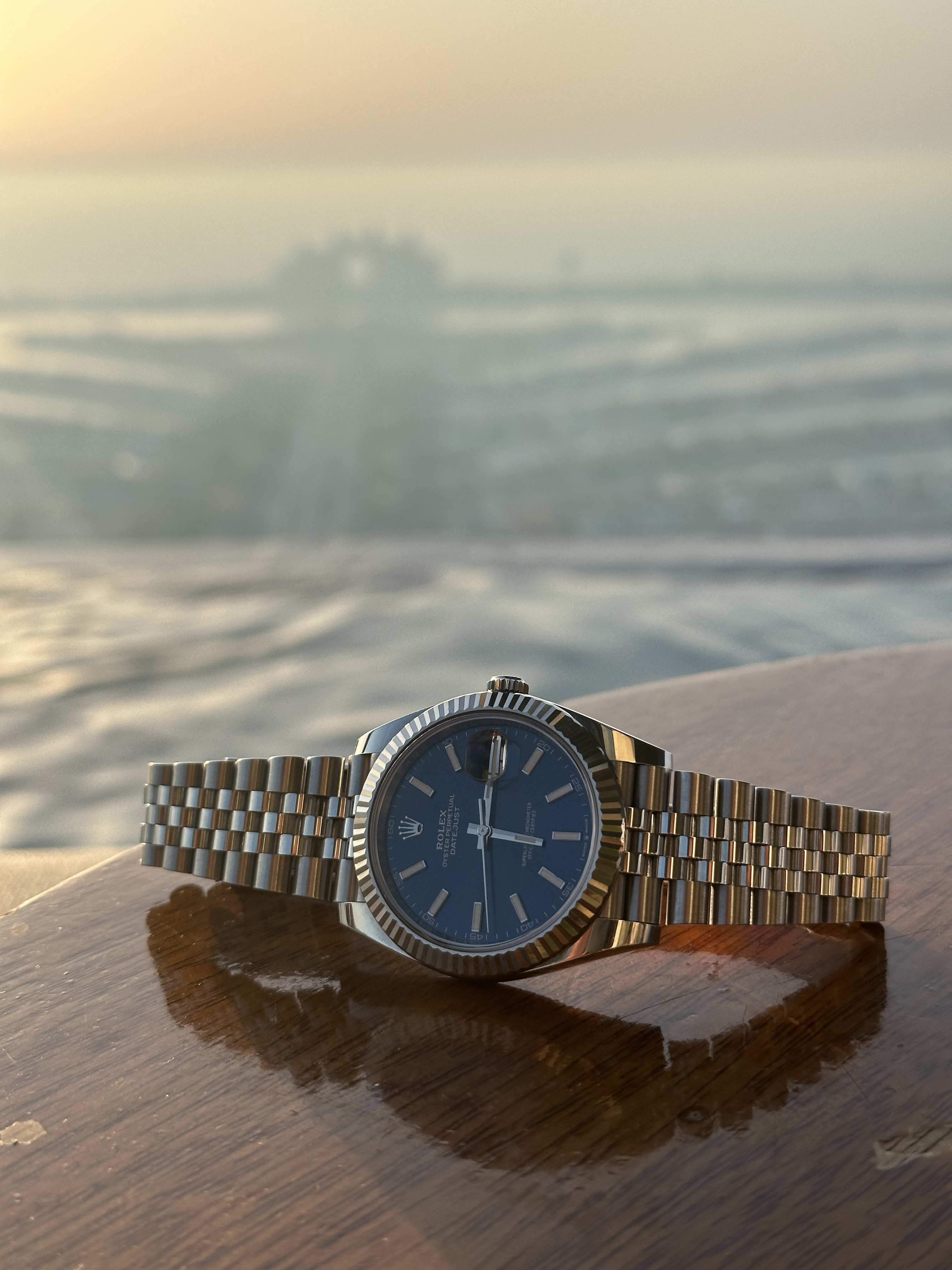 Ik zou voor iets compleet anders gaan. Heel eerlijk, je mist echt iets stijlvols, dat bij jouw smaakvolle fotografie past, naast al het sportieve en stoers dat je al hebt. Een horloge dat beter speelt met het licht dan alles wat je al hebt. Ik denk aan iets knaps op staal, kleur, vierkant, verfijnd, niet te klein. Een mooie dial is een must. Iets wat misschien een levenlang meegaat en gedragen kan worden bij meerdere gelegenheden, zowel in de zomer als winter. Tijdloos, klassiek en toch bij de tijd. Iets van nu.