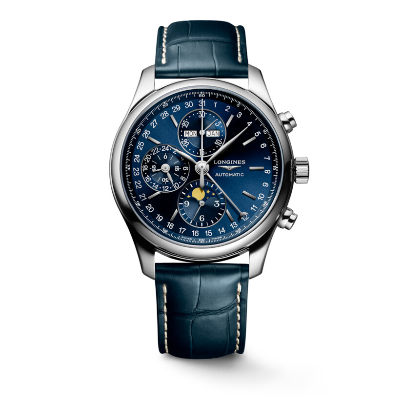 4 longines master collection chronograph triple date. Blauw is me favoriete kleur, longines hebben we samen met rado verzameld en een chrono met triple date functie hebben we nog niet in de verzameling en goh ja wat is ie mooi. ook weer een prentje van het net