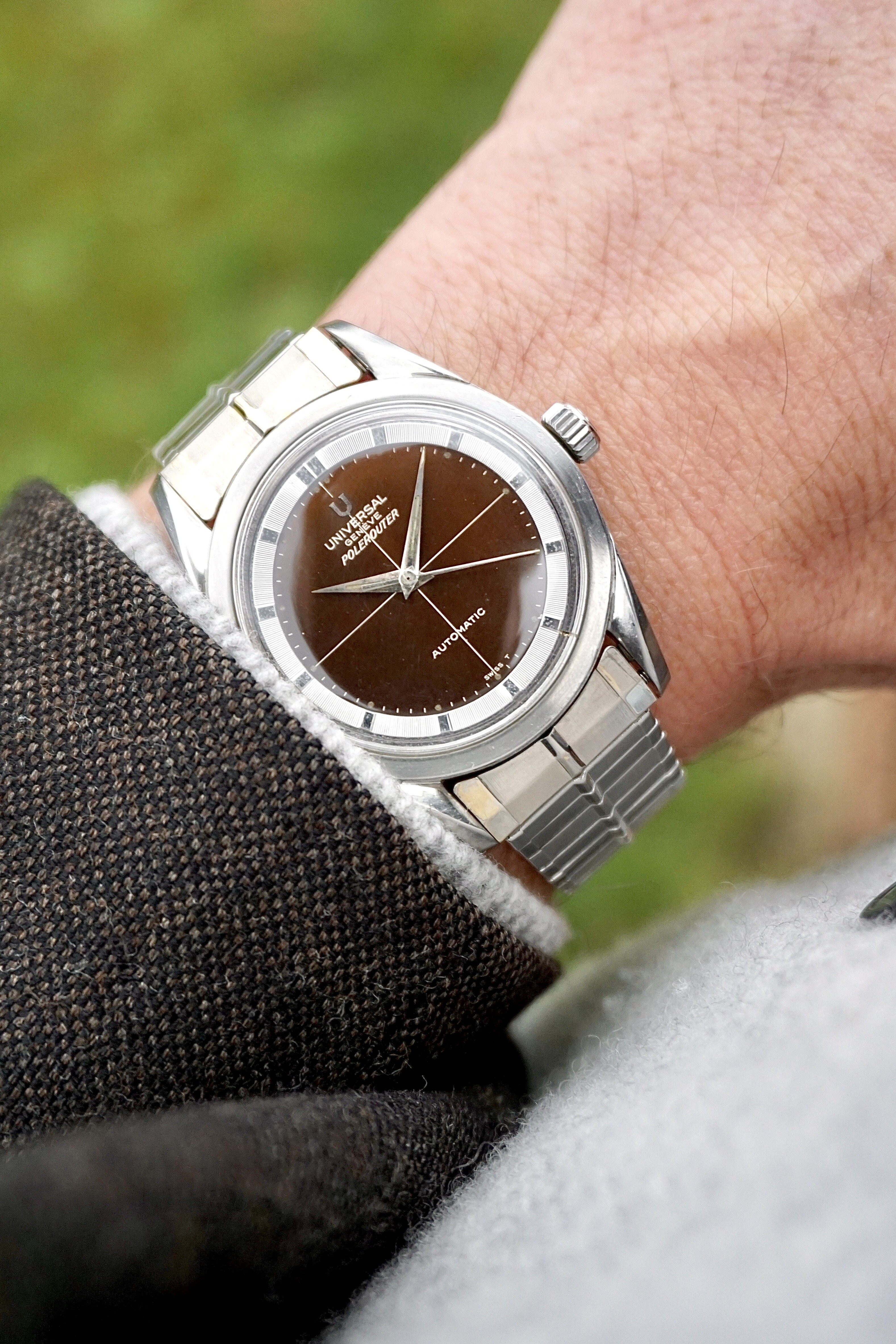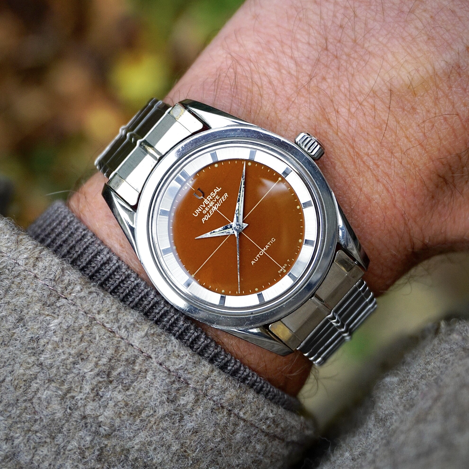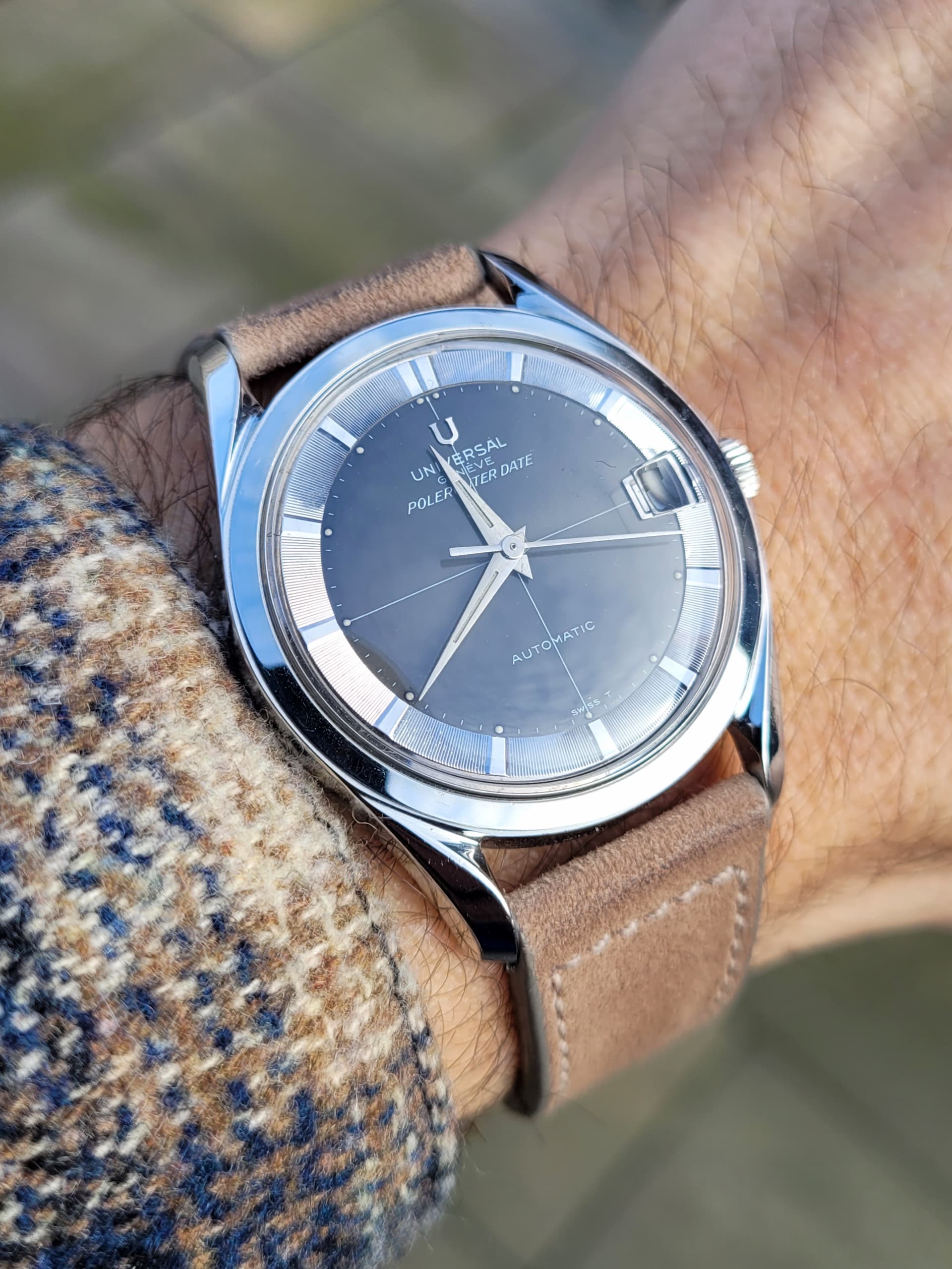 Ik word niet zo snel stil meer van horloges, maar sinds de eerste keer dat ik een jaar of 4 geleden de Polerouter van @Maverick_jr07 tijdens een GTG paste, wist ik dat deze er ooit moest gaan komen. Vervolgens erg intensief gezocht, ook @Ruud soms om raad gevraagd. Omdat het toch een tricky markt kan zijn, is het allemaal een beetje naar de achtergrond verdrongen. Totdat @Bauhaus zijn een Polerouter te koop aanbood. Dat triggerde mij om de stoute schoenen aan te trekken en gewoon de vraag te stellen, of zijn andere Polerouter (de 869111/04) misschien ook op de lijst stond om de set te mogen verlaten. Dat was niet per se het geval, maar desondanks zaten we een paar uur later toch al aan een drankje ![]()