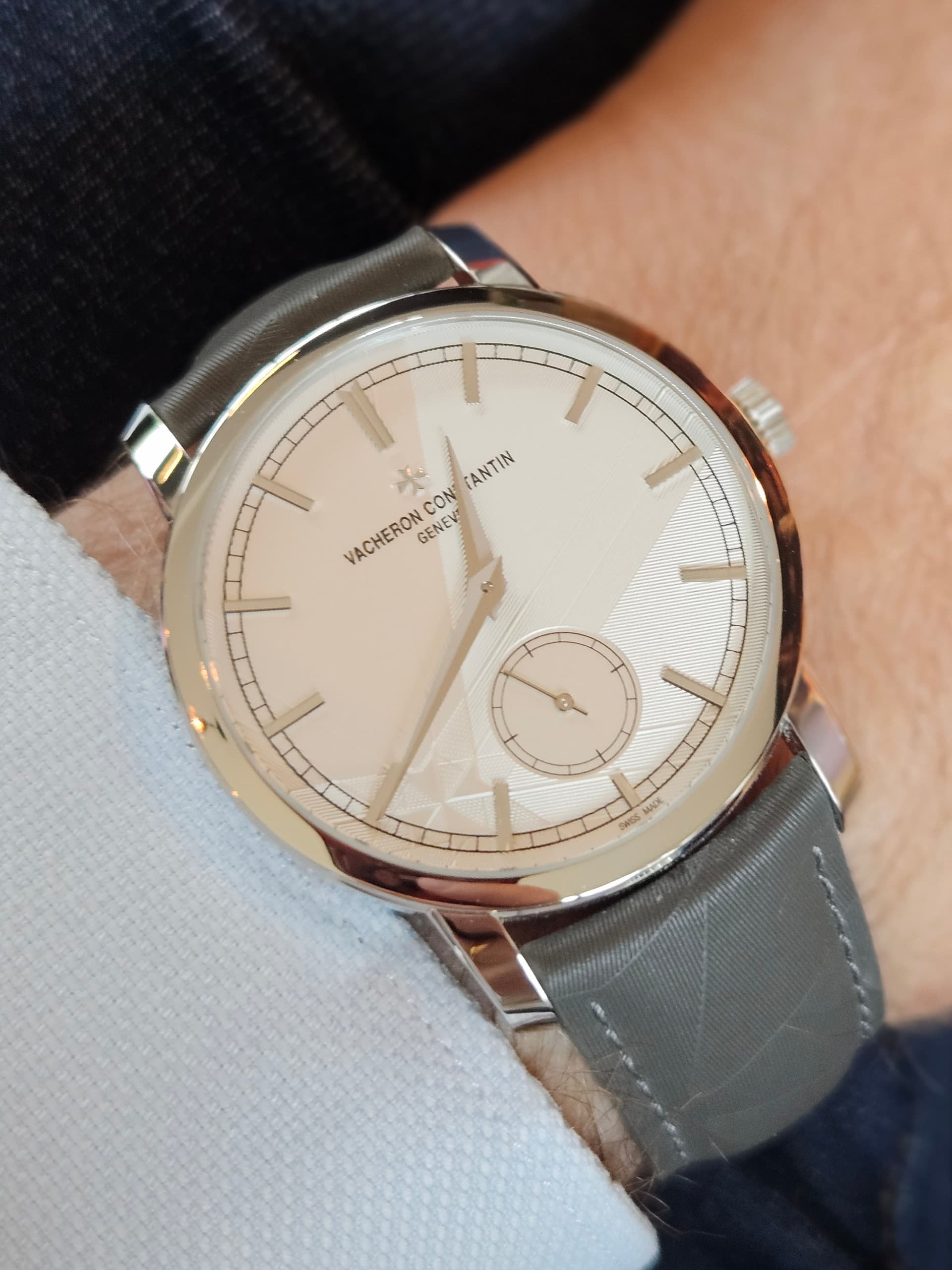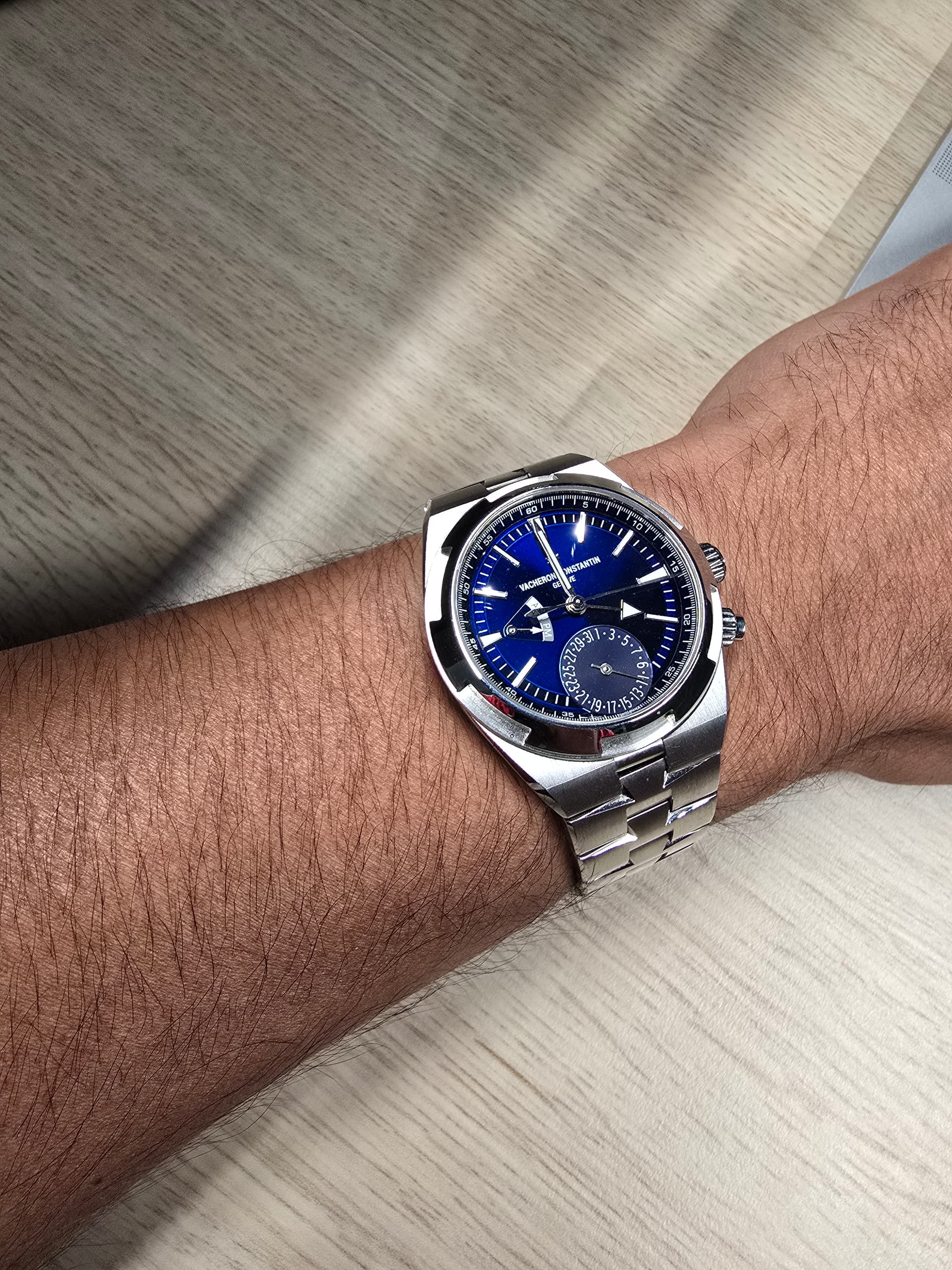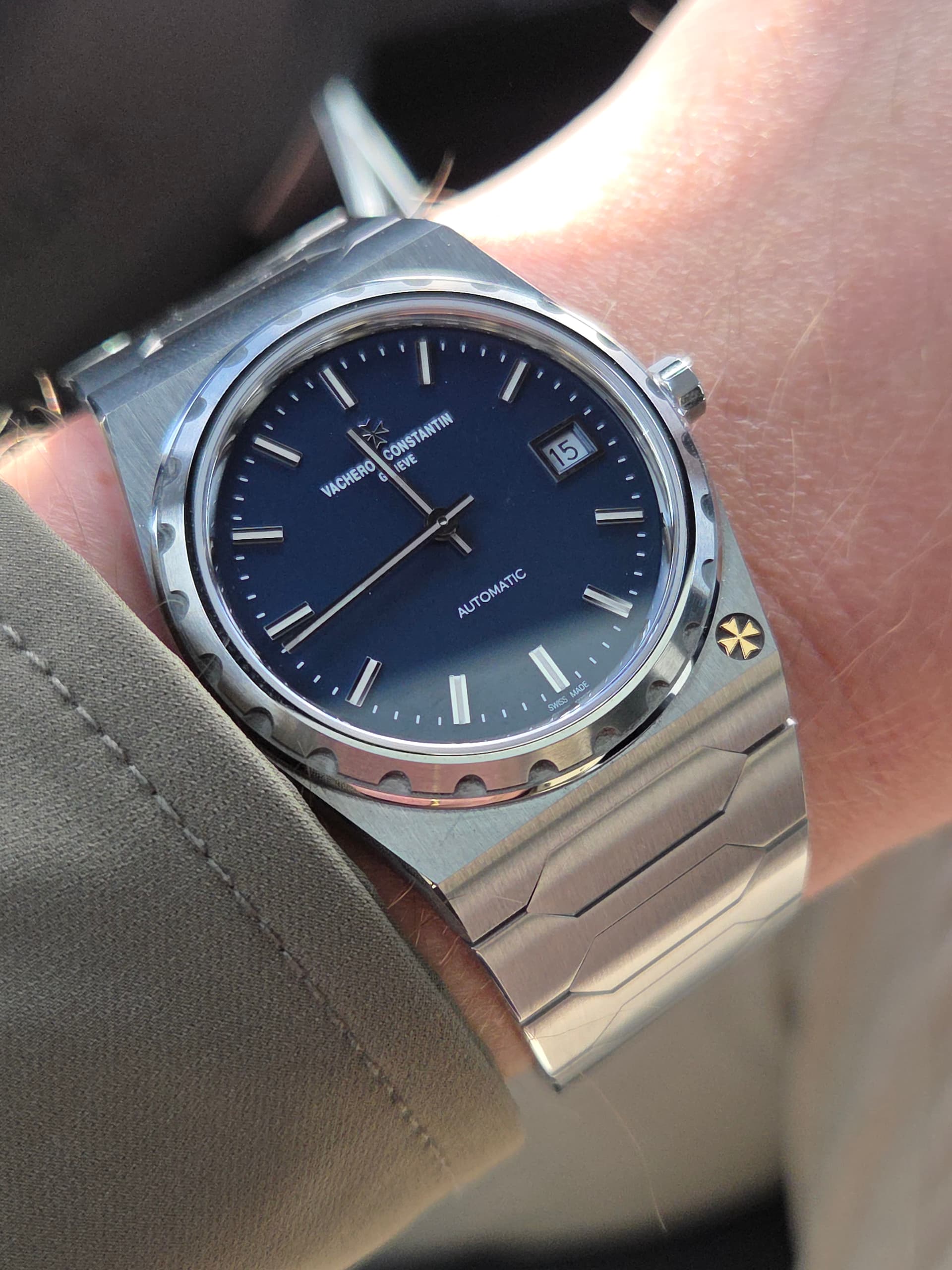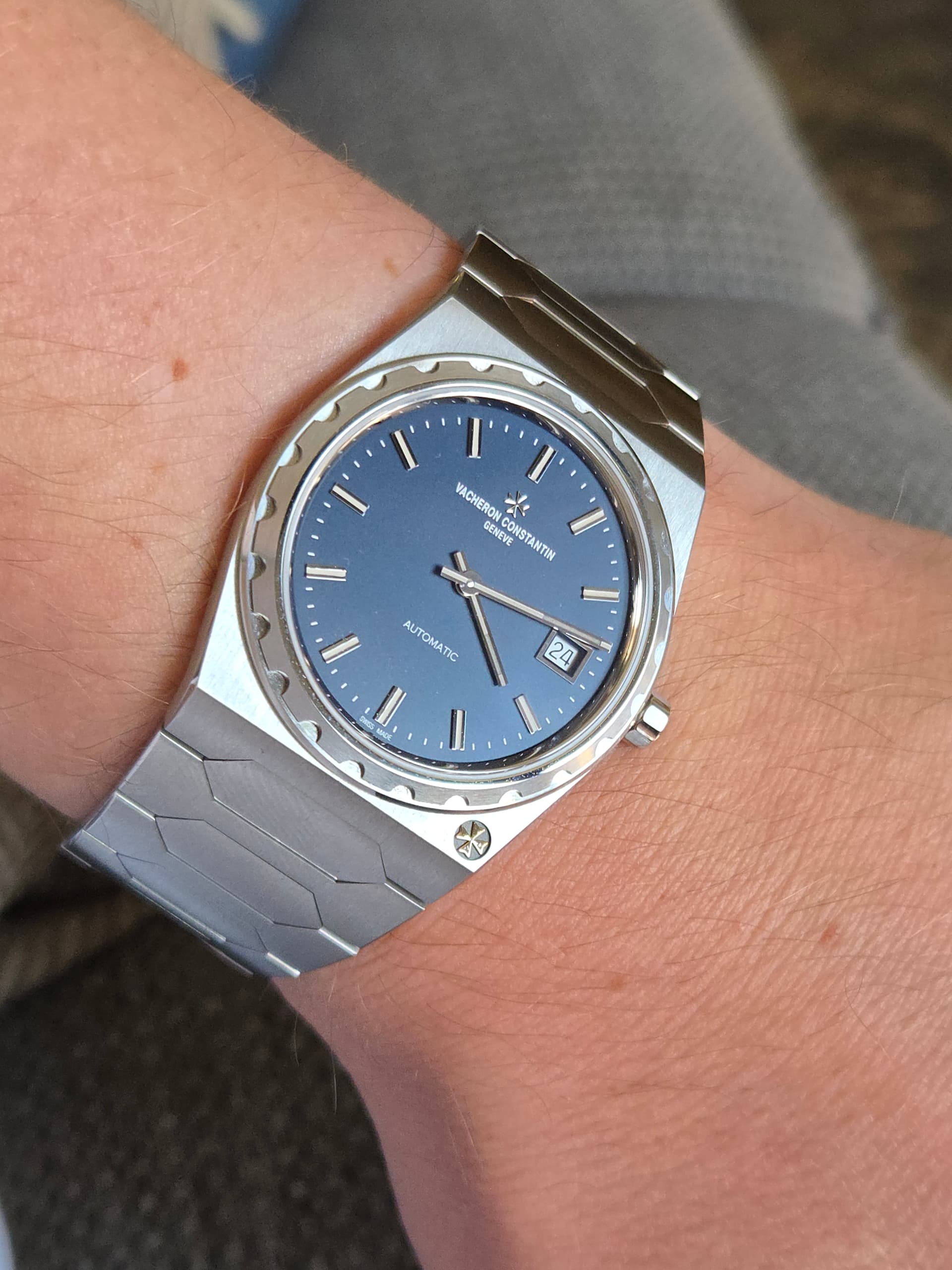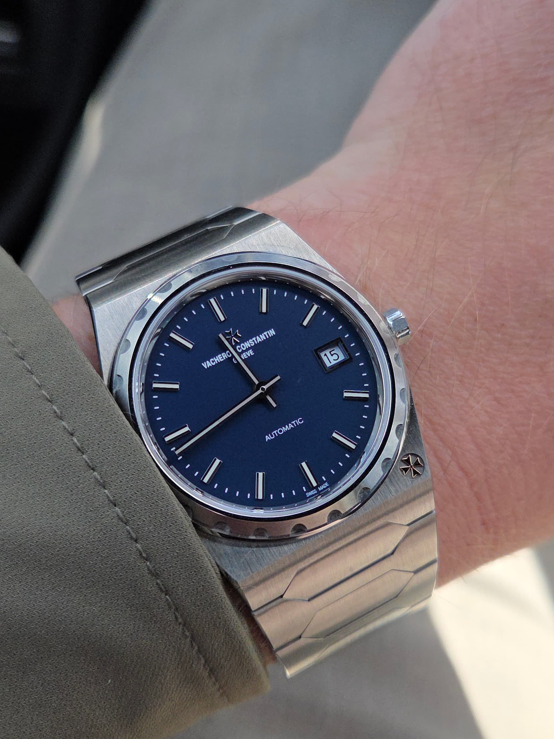 Toch de mooiste als het gaat om sporthorloges met geïntegreerde bracelet👌 Naar mijn mening mooier dan de Nautilus en de RO. Ja, ik weet dat deze VC door George Hysek werd ontworpen en niet door Gerald Genta. Vraag; hoe hou je de bezel met al die ronde randjes een beetje maagdelijk? Voor een poetsdoek moeilijk te bereiken?
