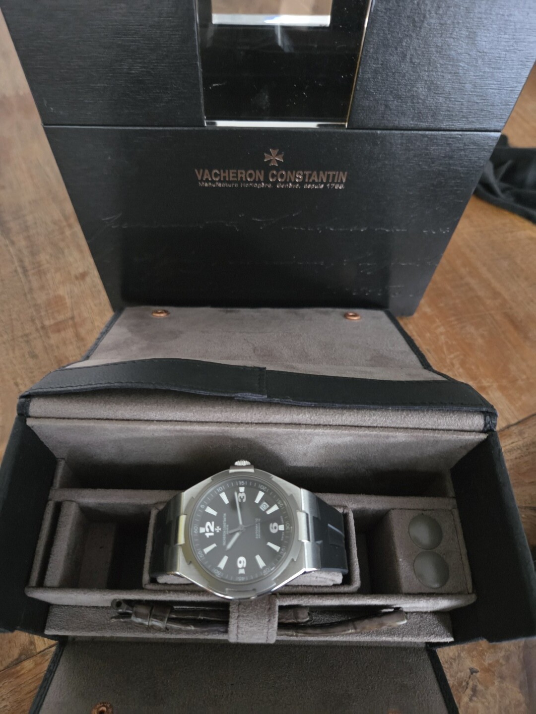 Super mooie Overseas Deepstream, die met de titanium bezel.