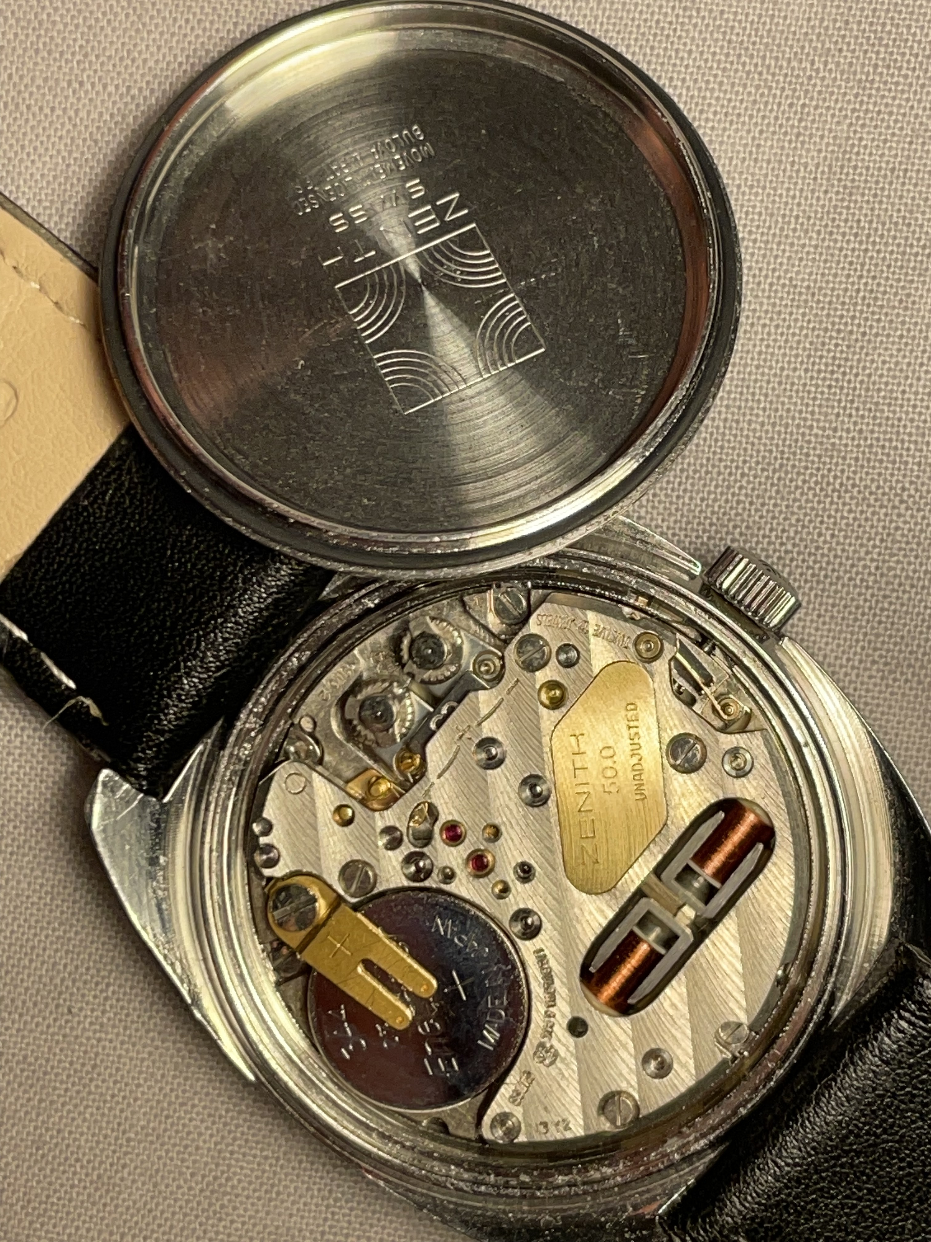 Maar toch… een Zenith stemvork is best bijzonder. Een Zenith XL-tronic met Caliber 50.0 stemvork, ref. 01-0060-500 ofwel de gekende ESA 9162.