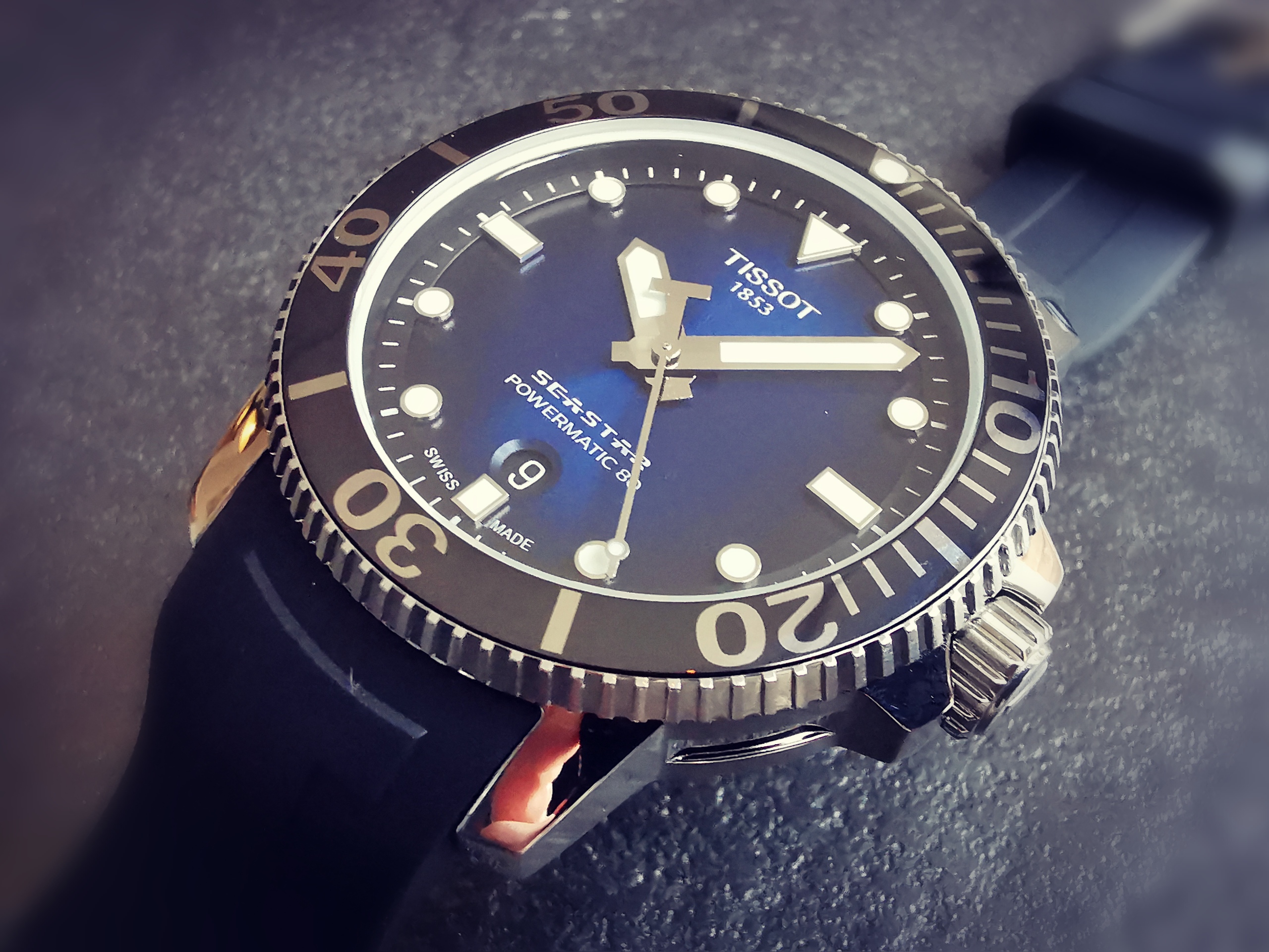 En wat voor één: een onwijs dikke klatser als je het mij vraagt. @Thijs_Kremers leverde deze keer de nieuwe aanwinst. De oplettende lezer heeft het gisteren al gezien, het is een Tissot. Maar niet zomaar ééntje, nee het is de TISSOT SEASTAR 1000 POWERMATIC 80. 80, ja 80! En die 80 staat voor een powerreserve van 80(!) uur.