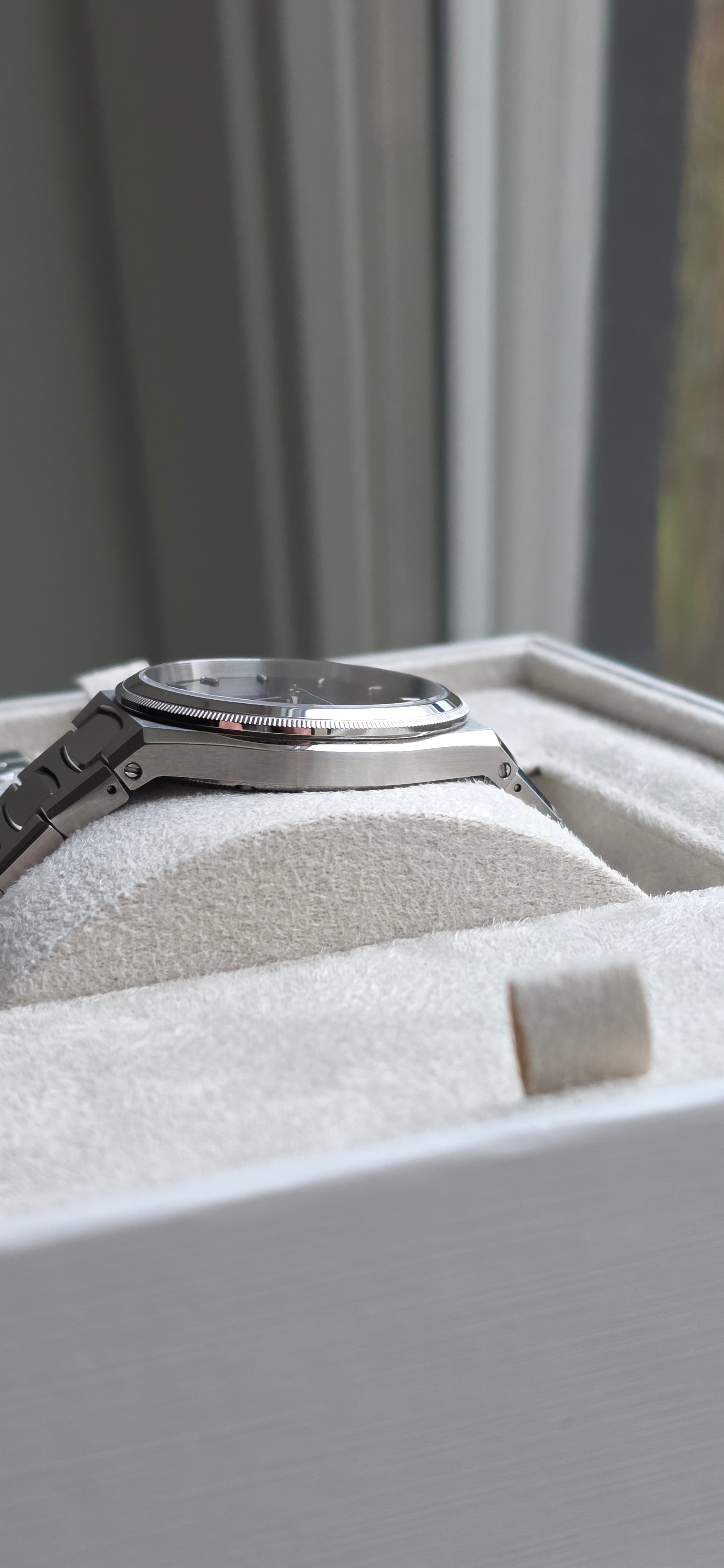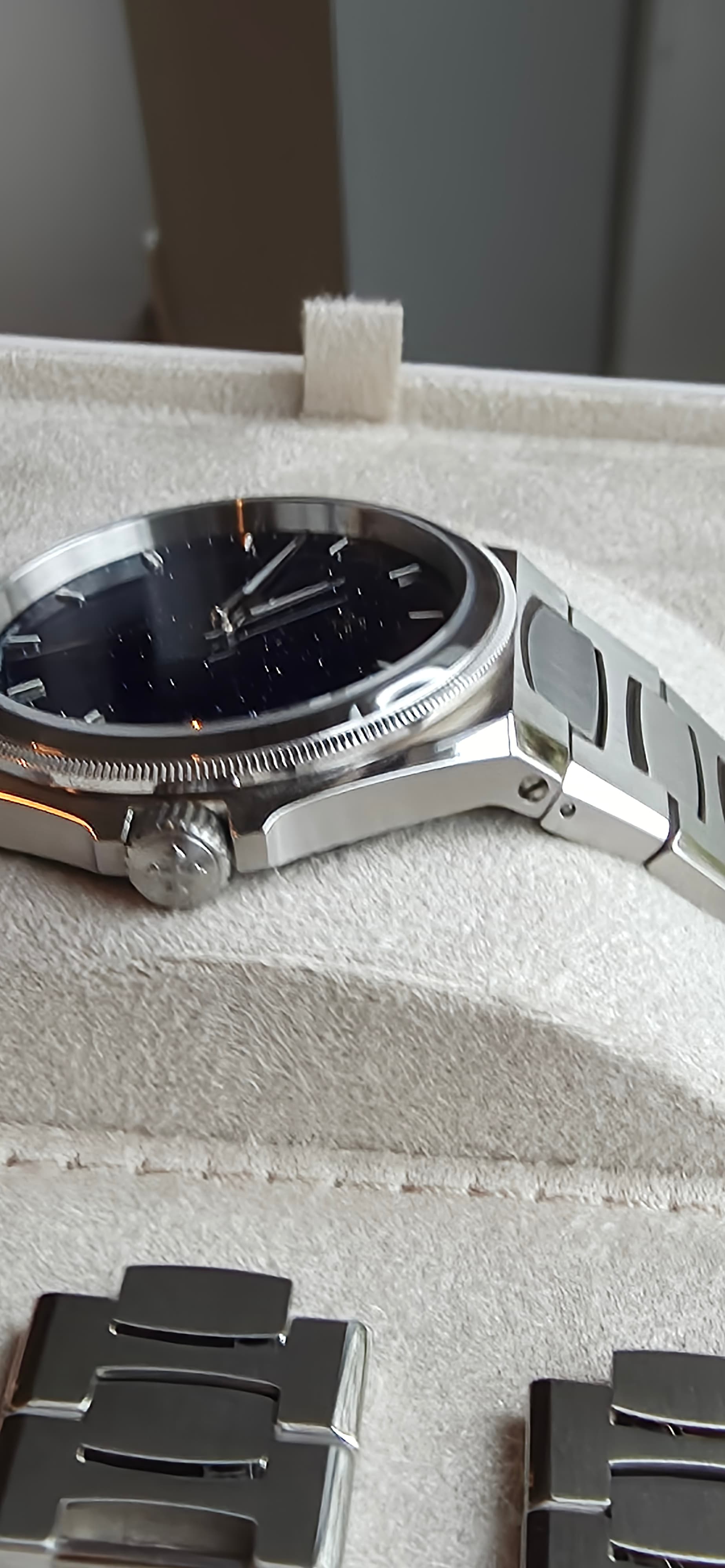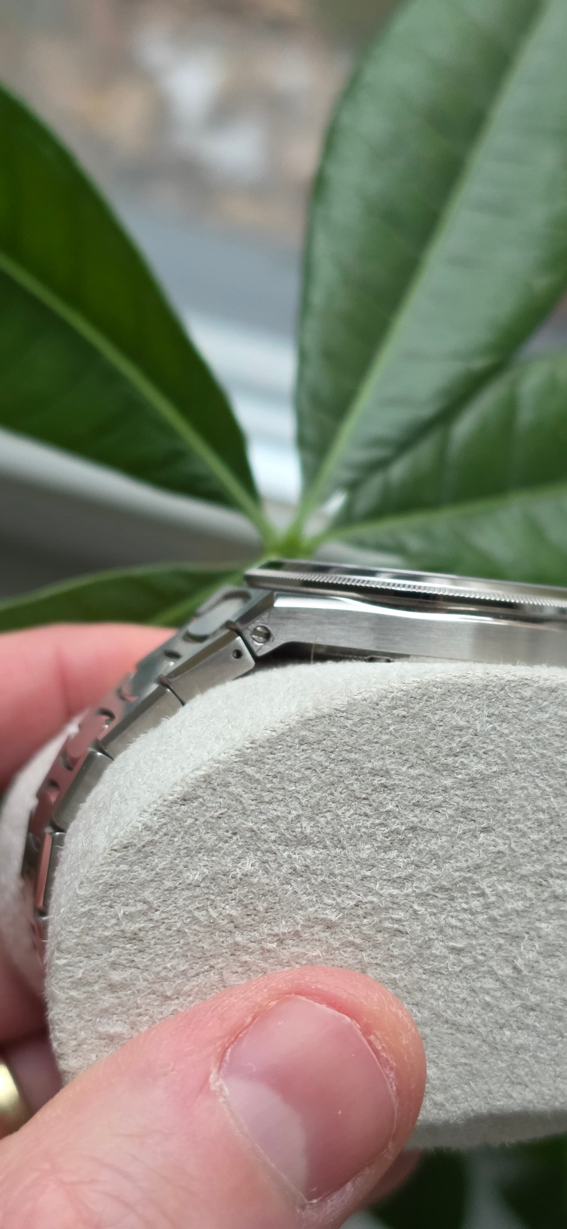 Originele doos en/of eventuele accessoires: Full set plus stalen band. Komt standaard enkel op rubber, deze komt extra met de originele stalen band, half-link en schakels. Stalen band komt gemonteerd, wat echt een drama is om te doen.