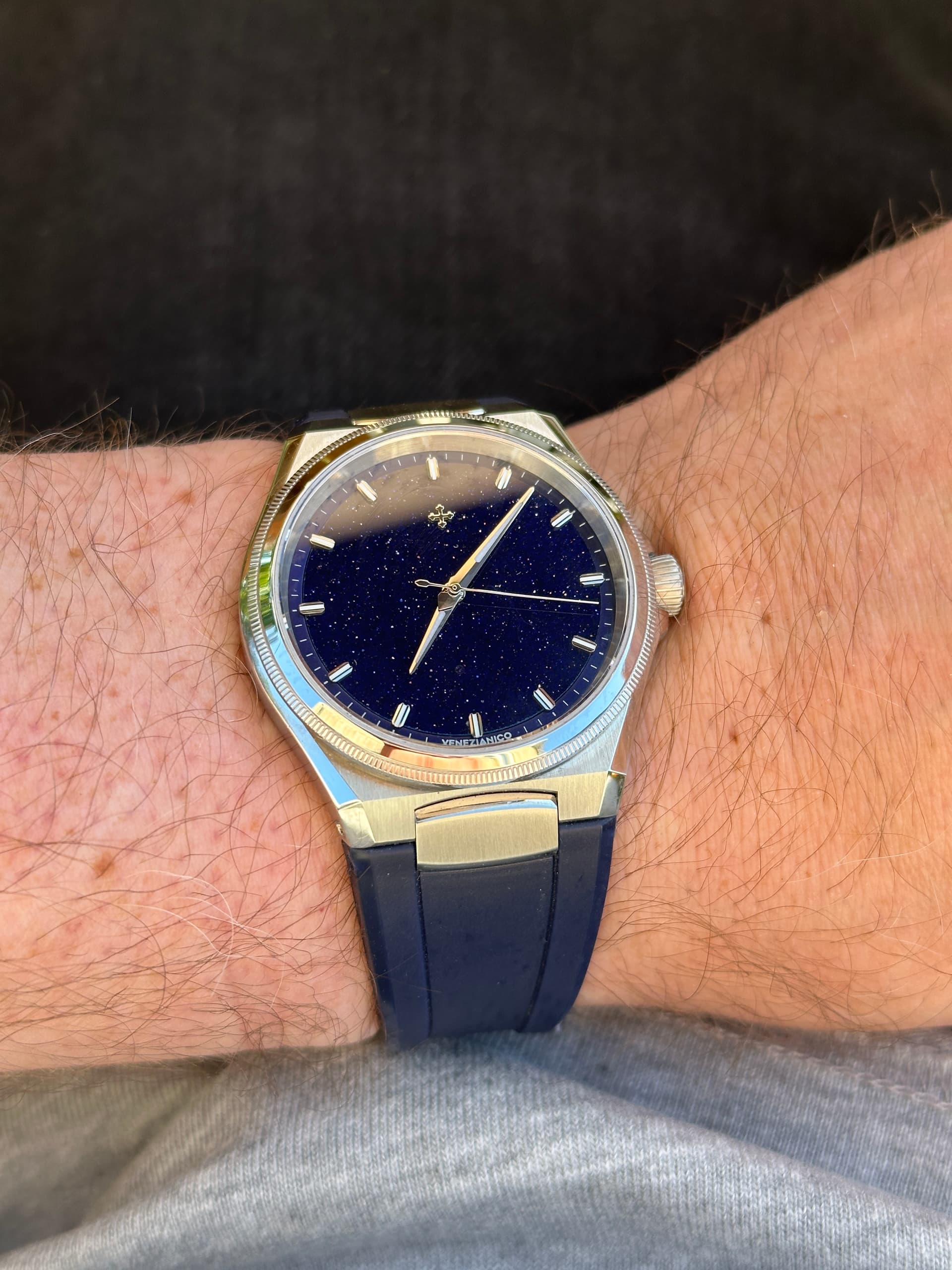 Te koop, geen (in)ruil. Verrassend mooie Venezianico met wijzerplaat van Aventurijn.