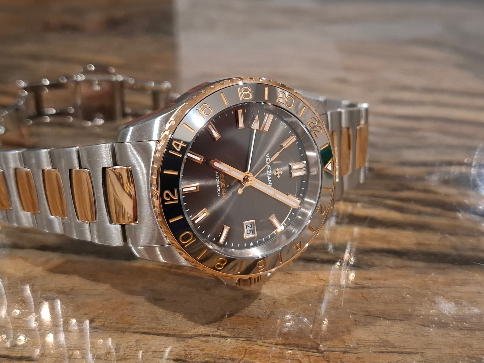 Niet als eigenaar maar onlangs in Düsseldorf in handen gehad en ook die was toch wel heel mooi…zowel in 42 als 39mm verkrijgbaar. De 39mm variant lag op de beurs. Qua afmetingen gelijk aan de 39mm tungsteno maar dan met een fraaie bladgouden plaat en andere stalen band.