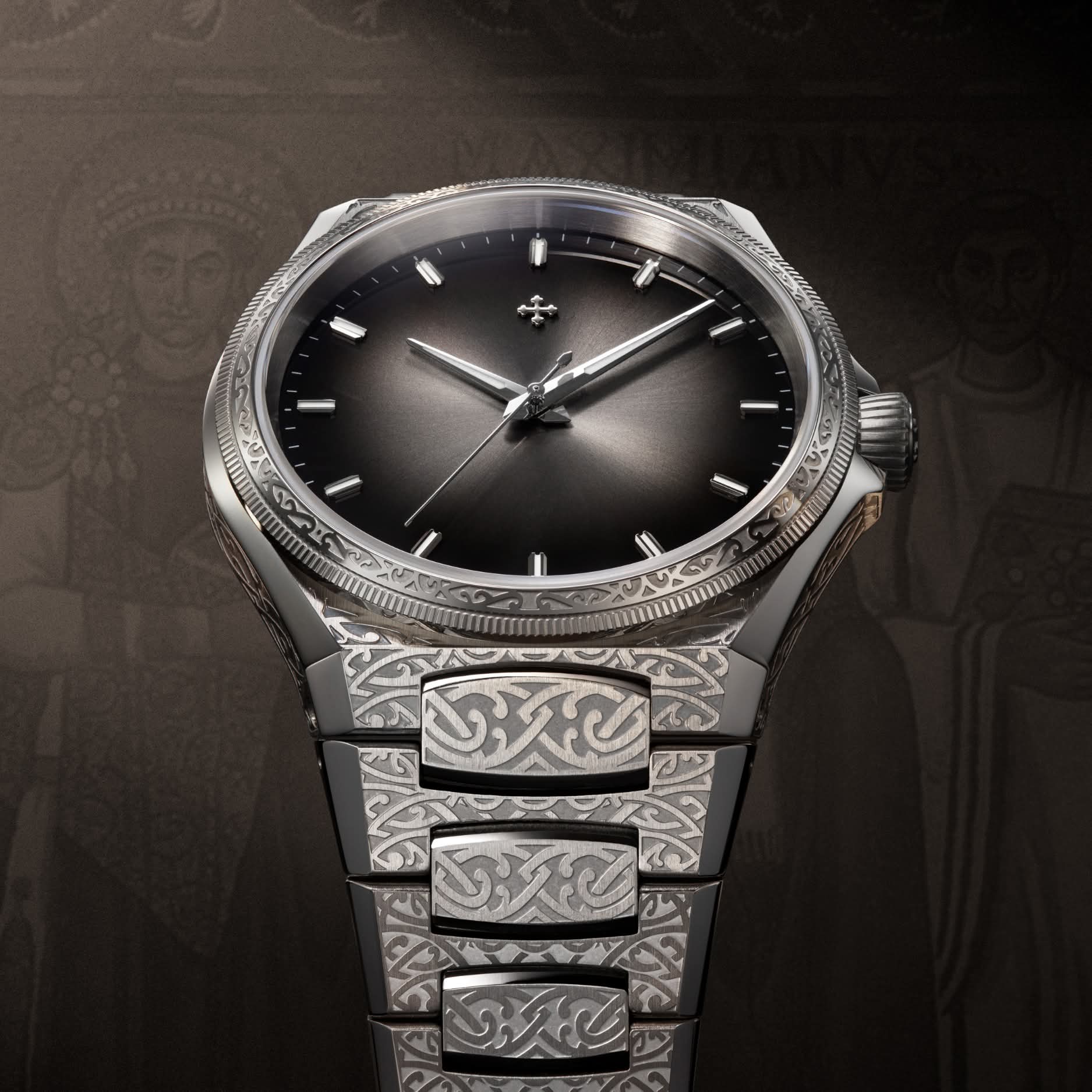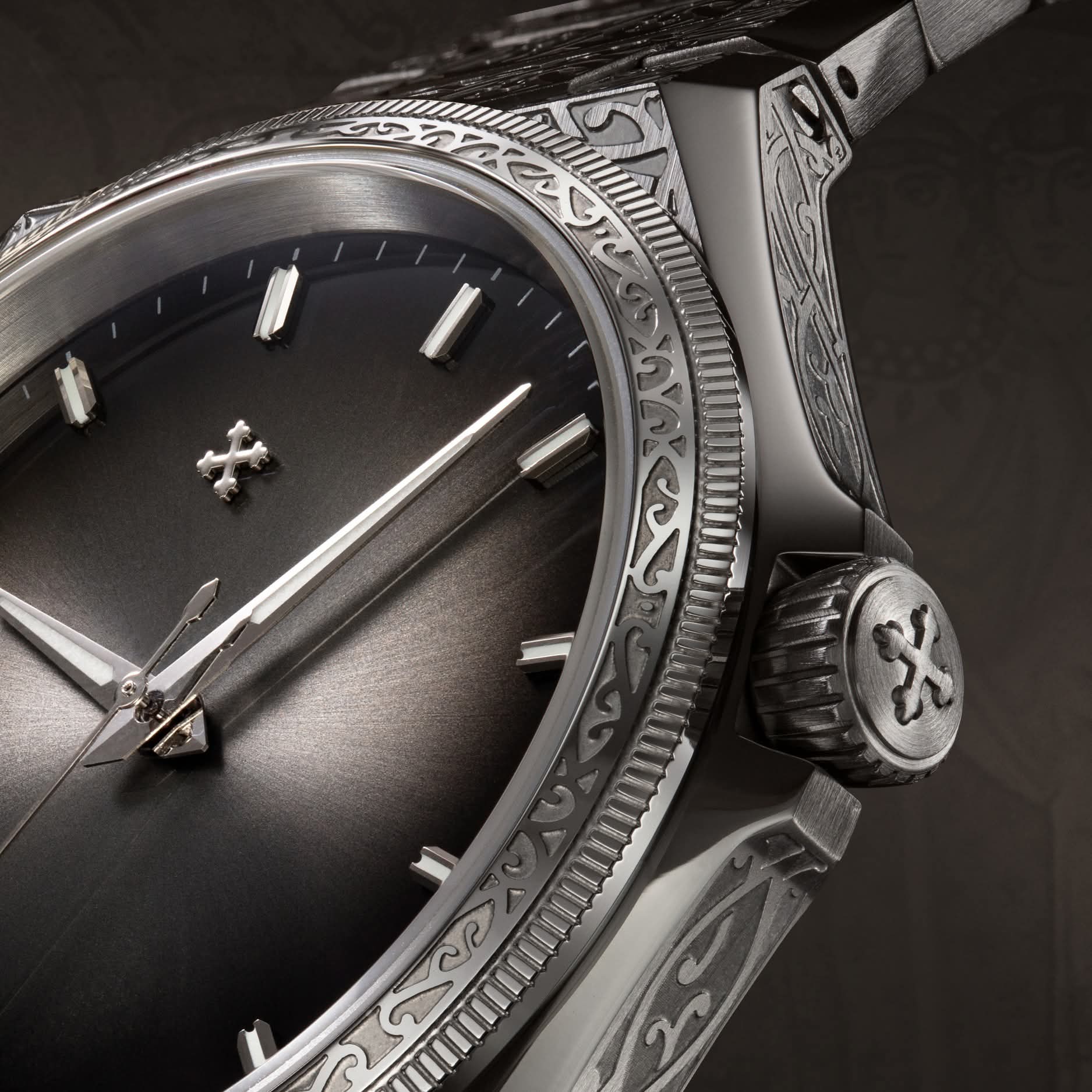 Voor het eerst brengen we een continue gravure op alle oppervlakken van het horloge, van de kast tot de armband, waarbij een complex patroon wordt geïntegreerd zonder de verhoudingen van het Arsenaal te veranderen.