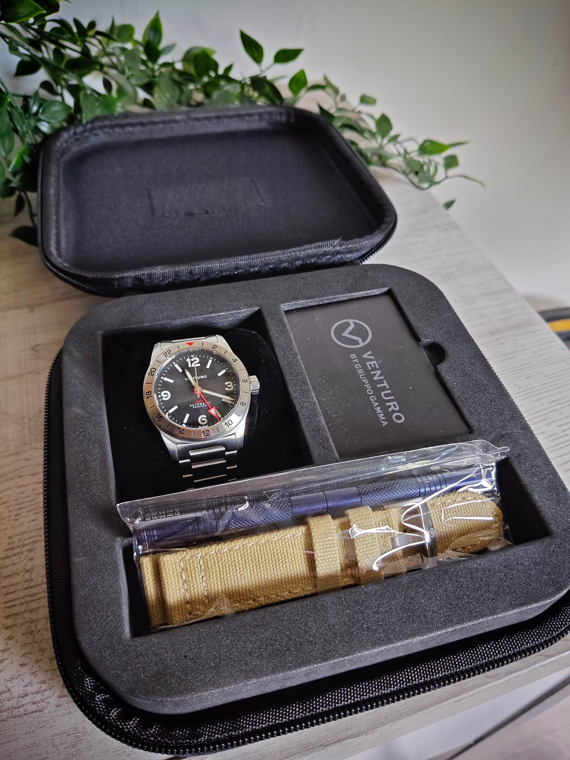 Te koop aangeboden een Venturo Field III GMT, no date. Deze nagenoeg nieuwe GMT mag de collectie verlaten. De Venturo heeft een case size van 40mm en is voorzien van een Seiko NH34A. De stalen band is voorzien van een quick release dus snel wisselen naar een strap is geen probleem.