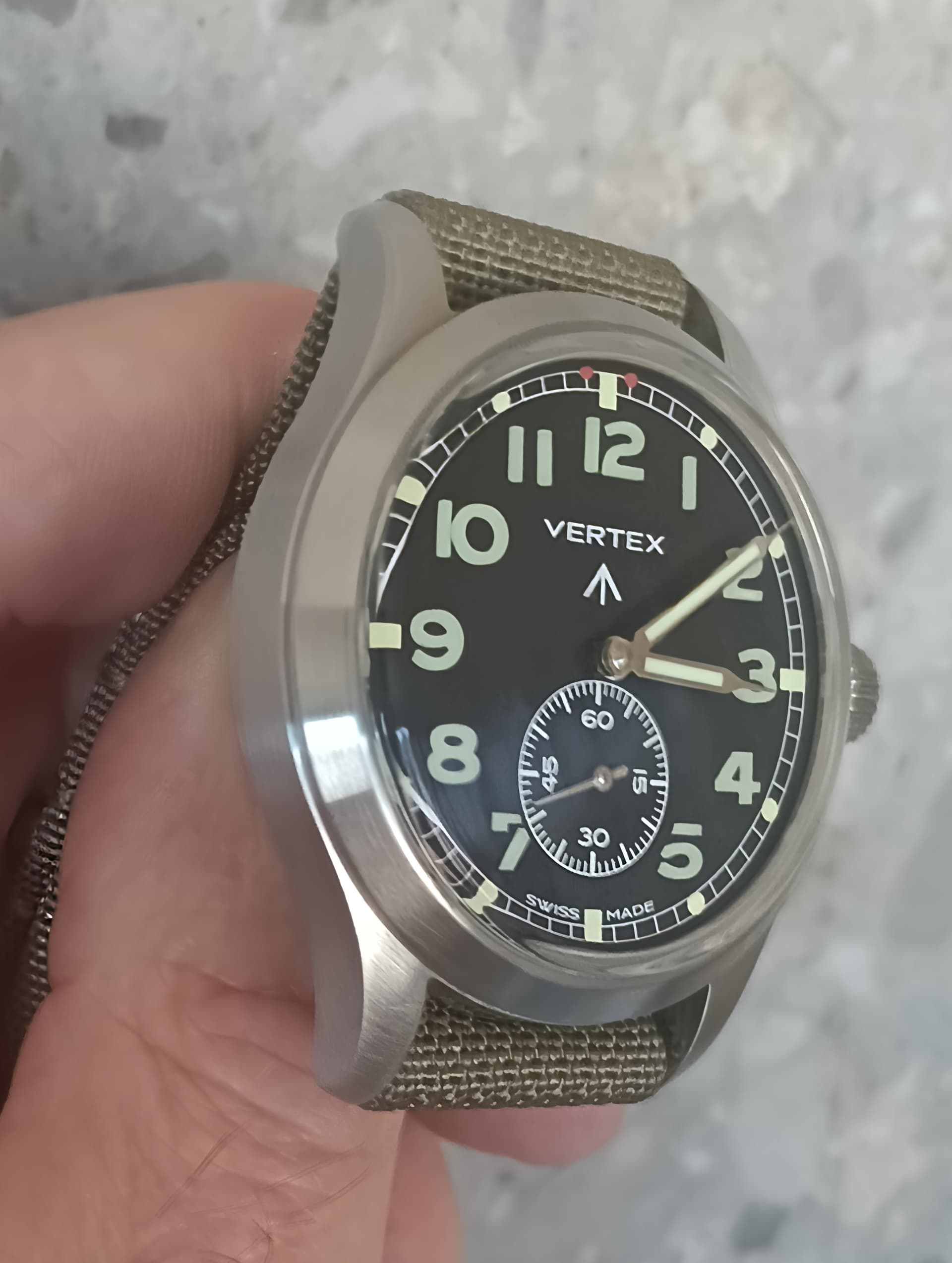 Al met al dus : orginele stalen bracelet, let op de lume in de clasp met verstelling, plus een extra clasp, leren Vertex band, Drie Vertex NATO, en de zwart met leer canvas plus de olijf aged canvas.