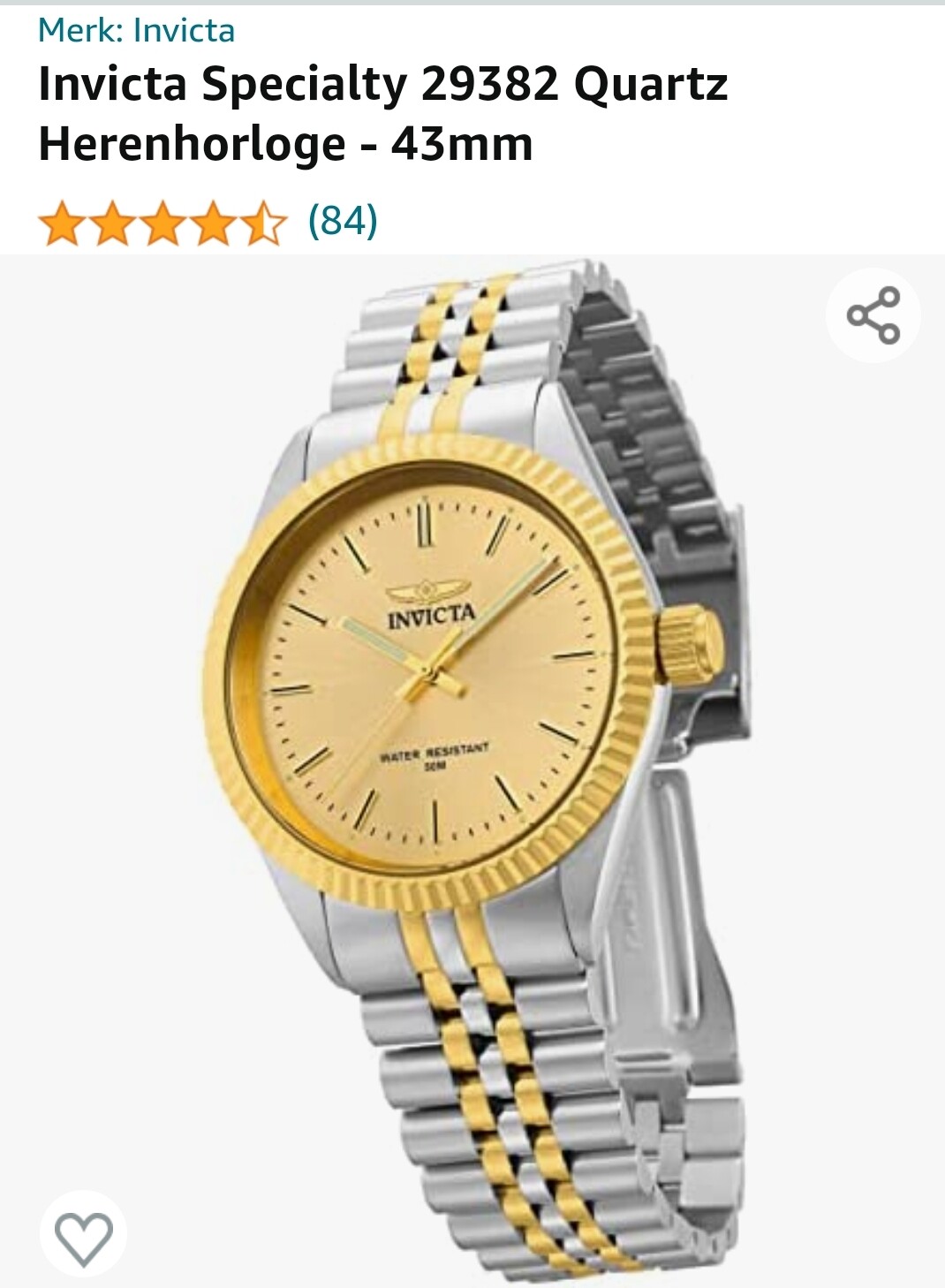 Dan doe ik er nog een Invicta bij. De Invicta Specialty, zilver, goud, 43mm. Nieuw in doos, foto’s van internet. Kom maar op met de biedingen ![]()
