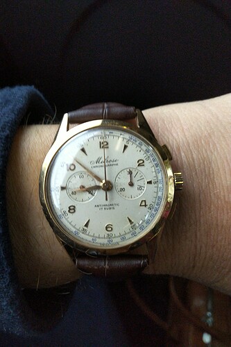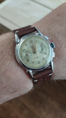 Bijzonder, ik heb hem van een belg op dit forum die een grote verzameling chronografen heeft. Blijkbaar heeft hij nogal een leven achter zich!