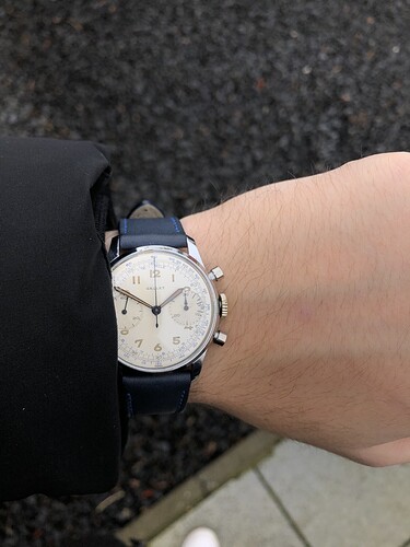Met een Valjoux 22 van binnen die nog steeds zo mooi loopt na circa 80 jaar. Blijft knap vind ik.