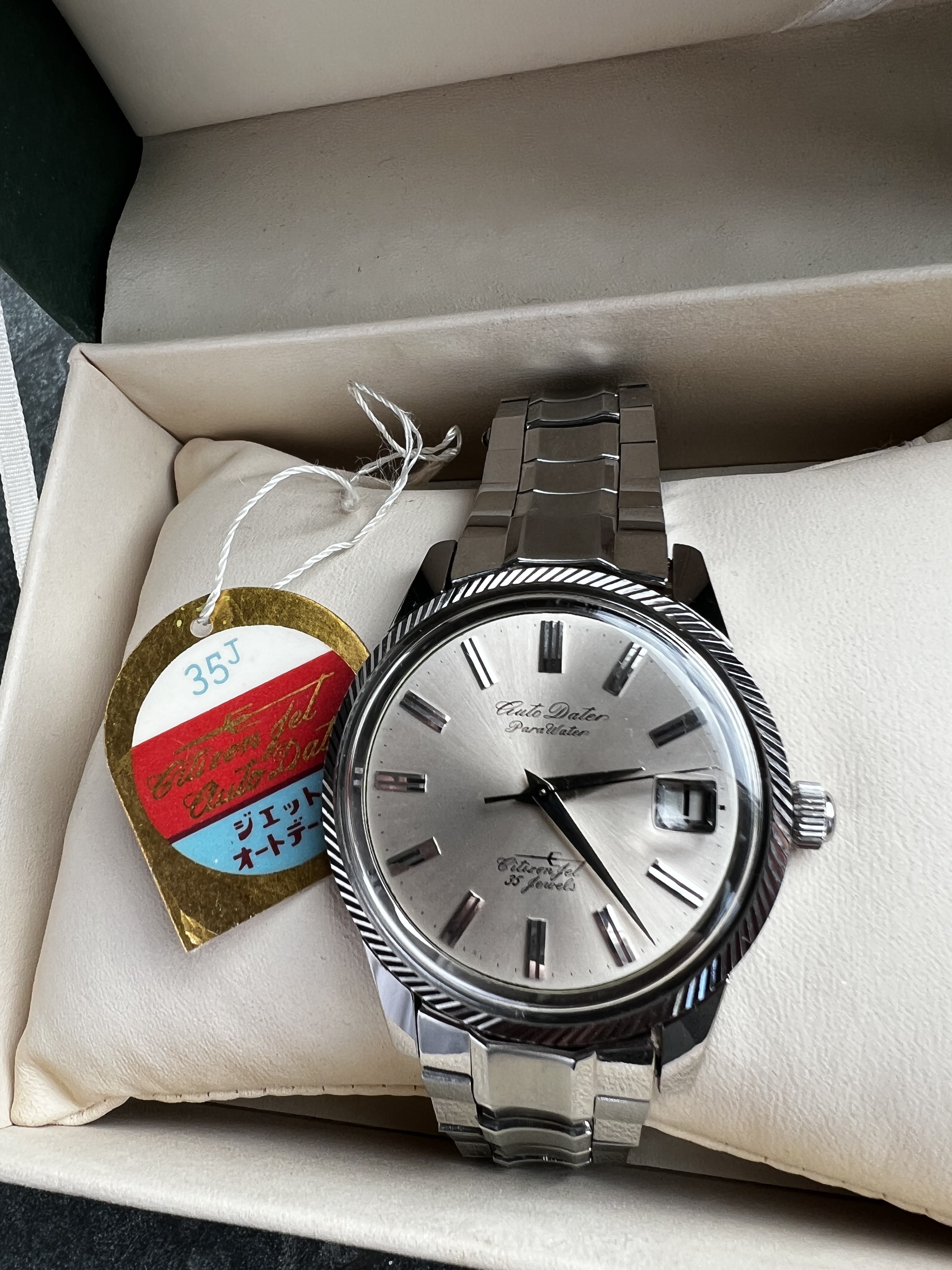 Uiterst zeldzame Citizen Auto Dater jet 35 jewels uit april 1964, ook bekend als Citizen AD15707.