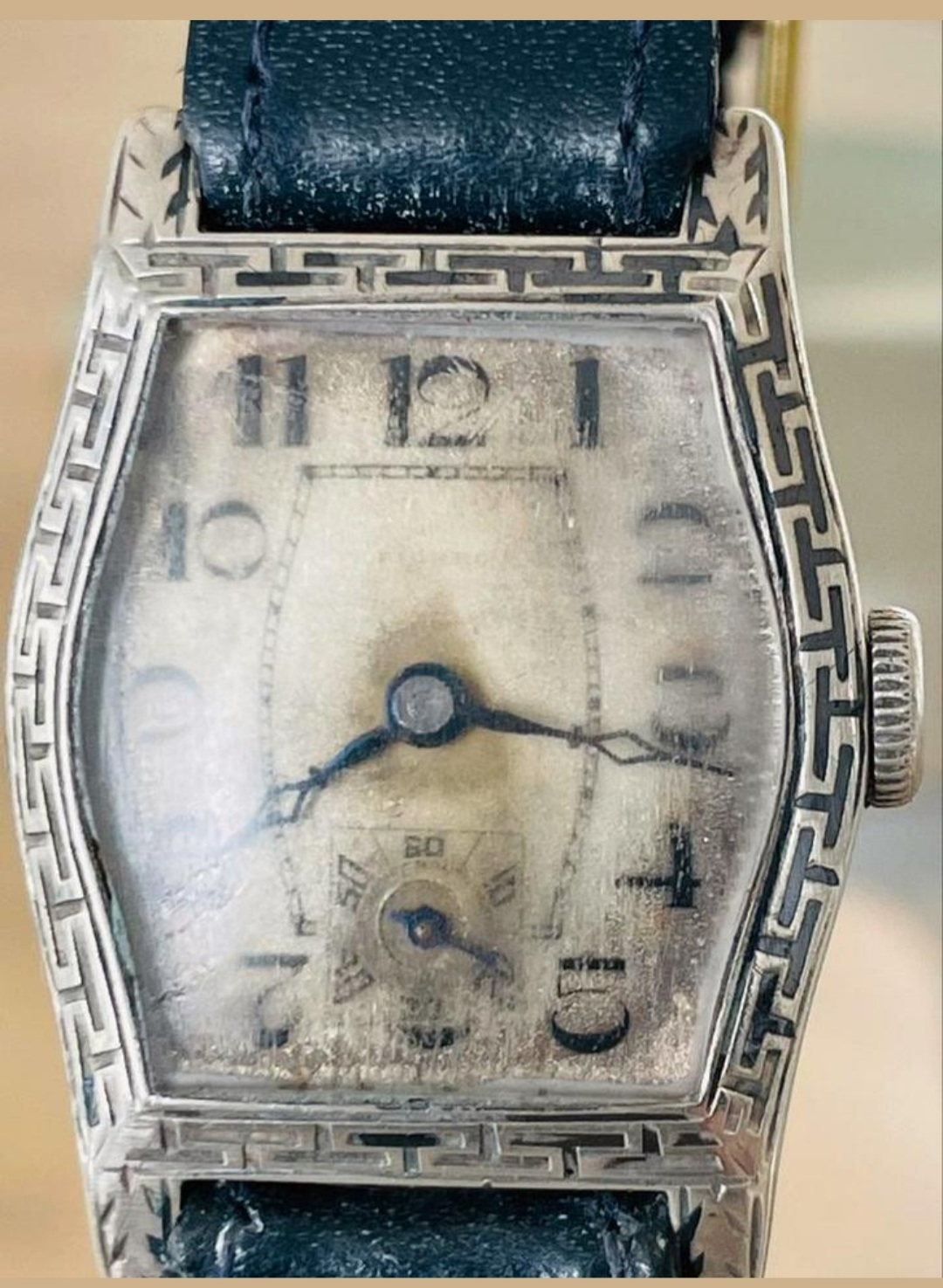 Ik zou het schoonmaken van deze wijzerplaat niet gelijk afraden. Dit soort horloges uit de jaren 20/30 hadden vaak een zilveren wijzerplaat met daarin de cijfers/track er in gebakken (hard enameled). Die poets je er niet zomaar af. Het merk was vaak later erop geschilderd dus die kun je wel kwijtraken.