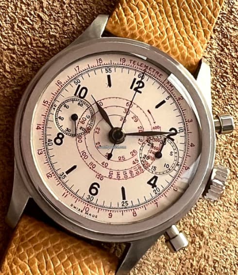 Interessante Valjoux. Caseback heeft een stempel/gravering met KLM-Nav. Zou dat gelinked kunnen zijn aan de hollandse vliegmaatschappij? DD 1948, kast is 38mm.