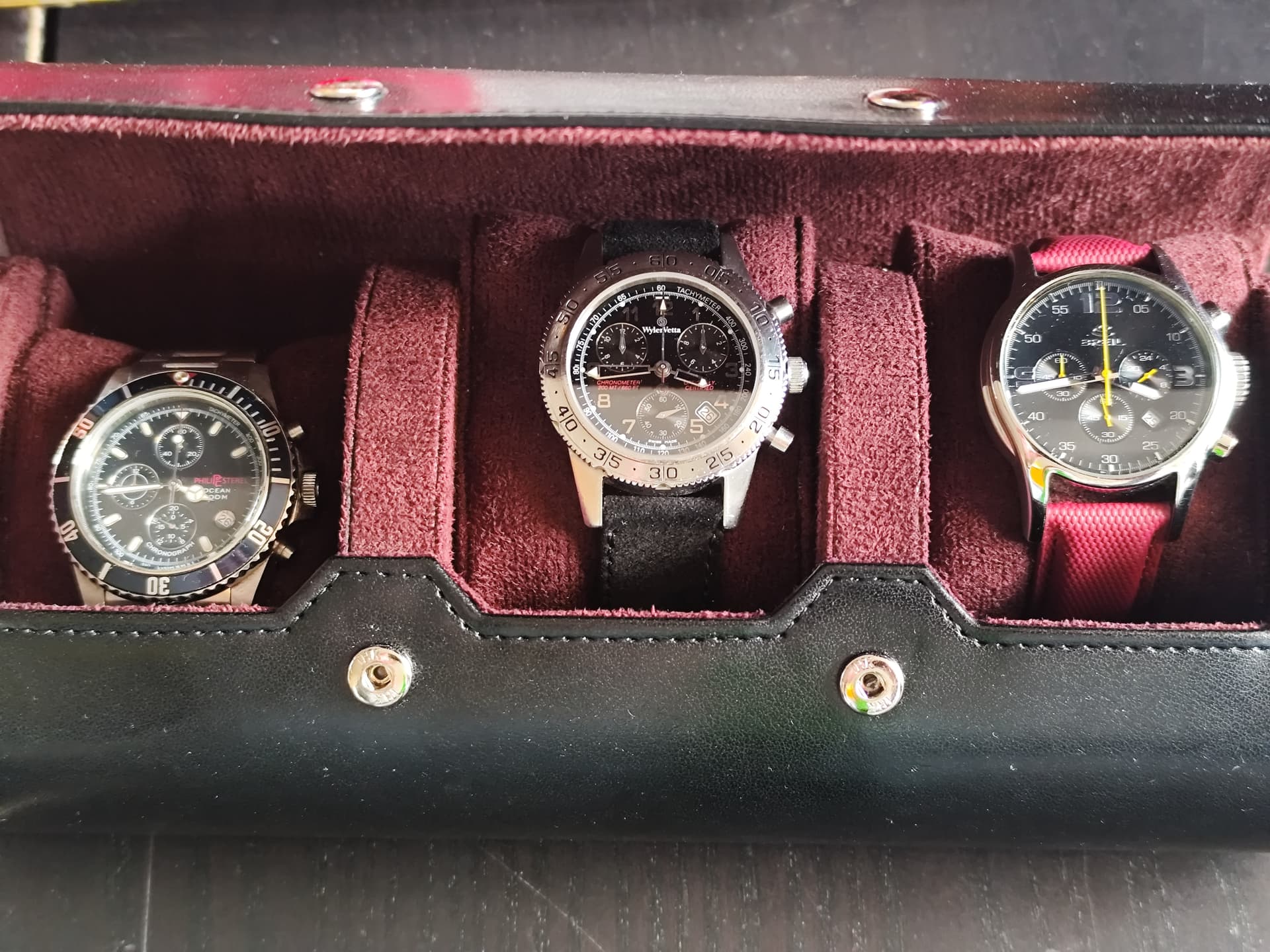 Vandaag een prachtige, donkerblauwe horlogedoos van @Riepos ontvangen. Smalle kussentjes, dus meteen gevuld met tankjes.