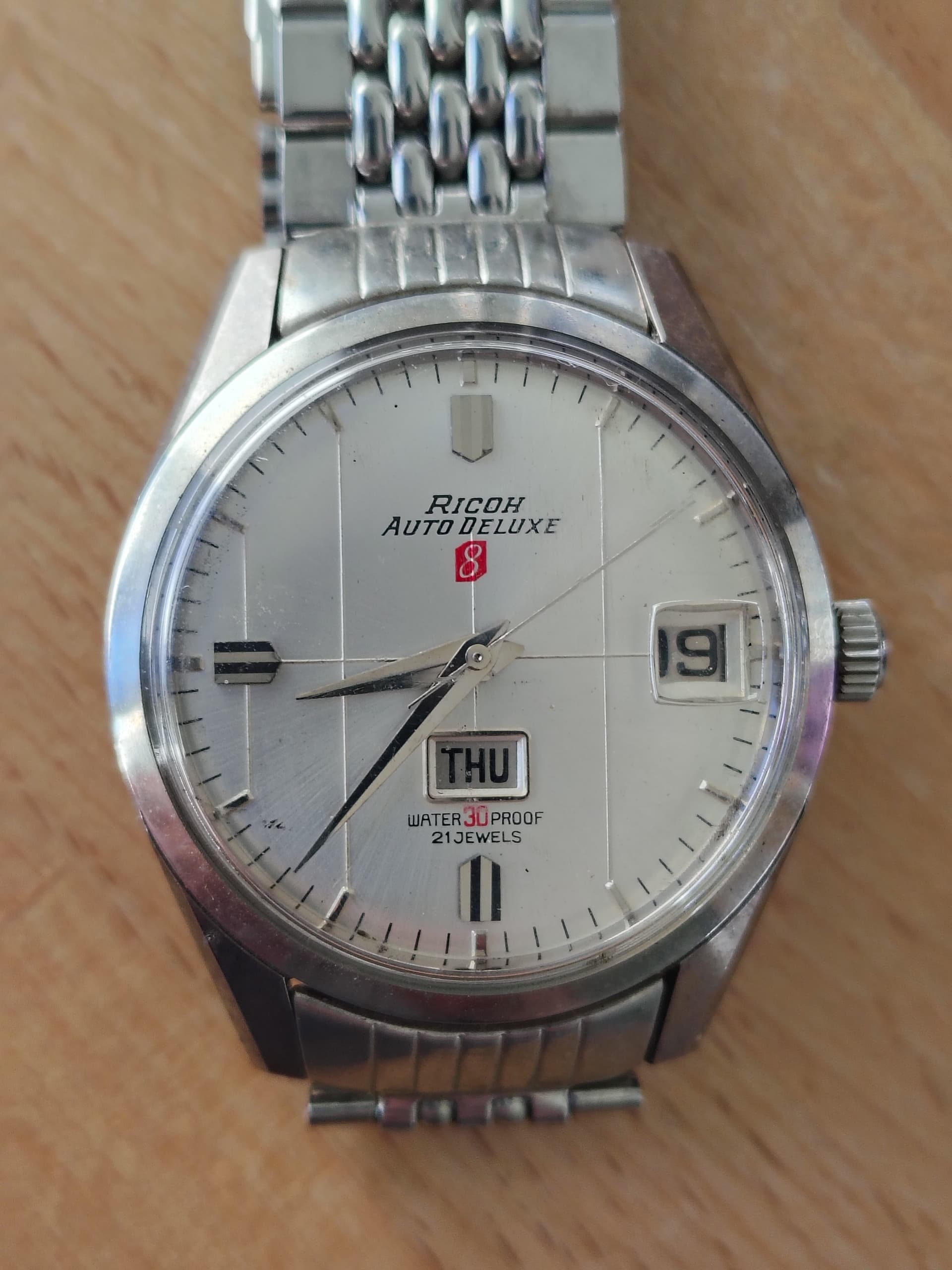 Zes Ricoh, waaronder een paar quartz en eindelijk een Dynamic Auto 45 jewels