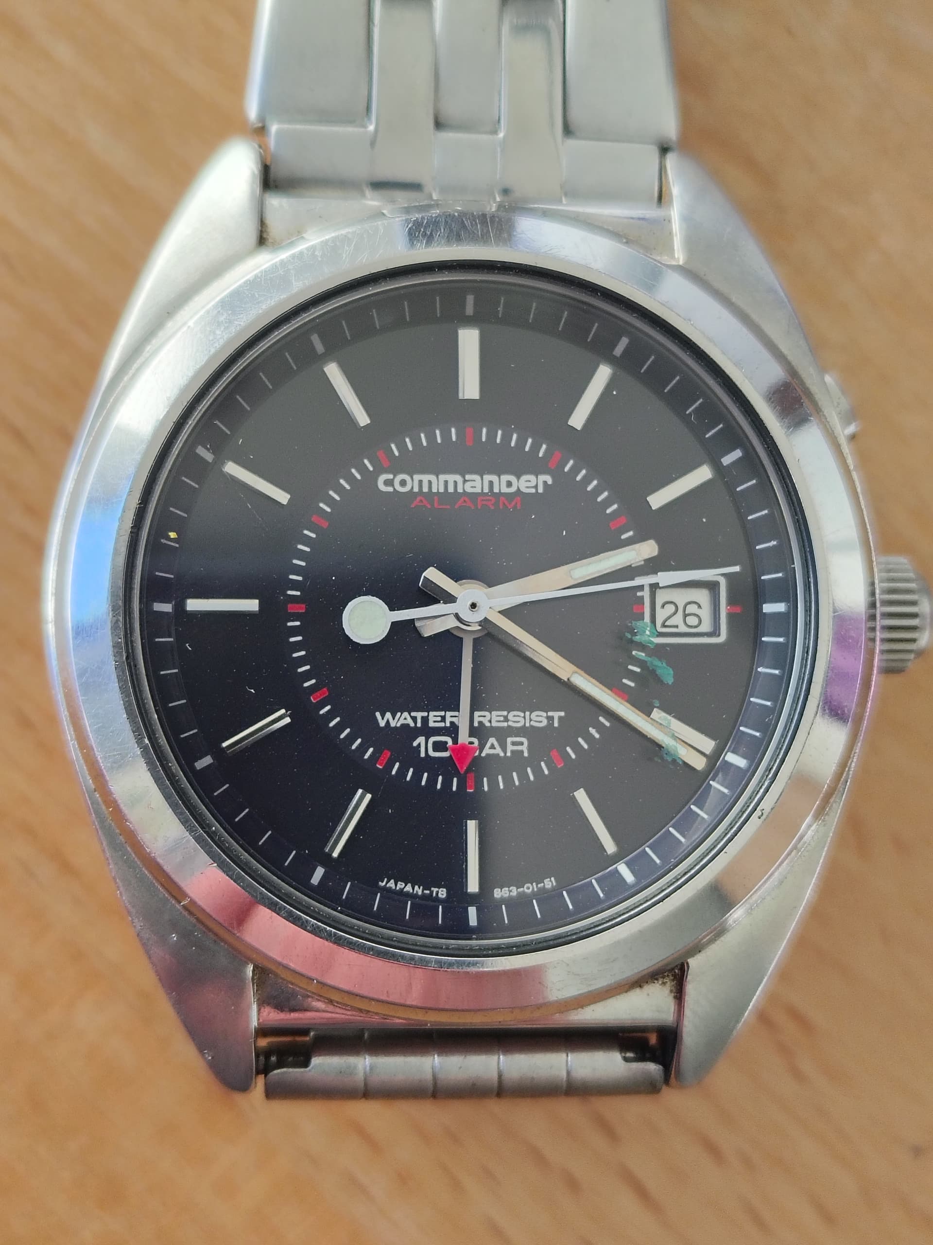 Bijna 36mm doorsnee, de bewerking op de wijzerplaat had ik nog niet in de collectie.