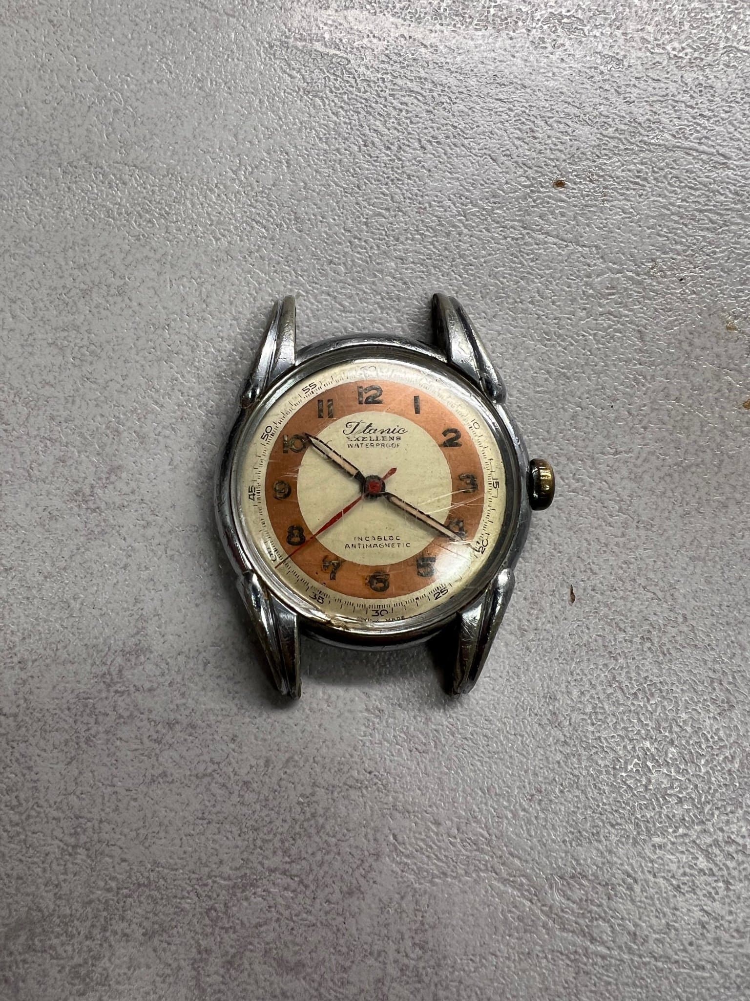 Vanmorgen aangekomen: een lot van vier horloges. Ik heb het gekocht voor deze Titanic Exellens uit de 50s met een FHF 25 kaliber.