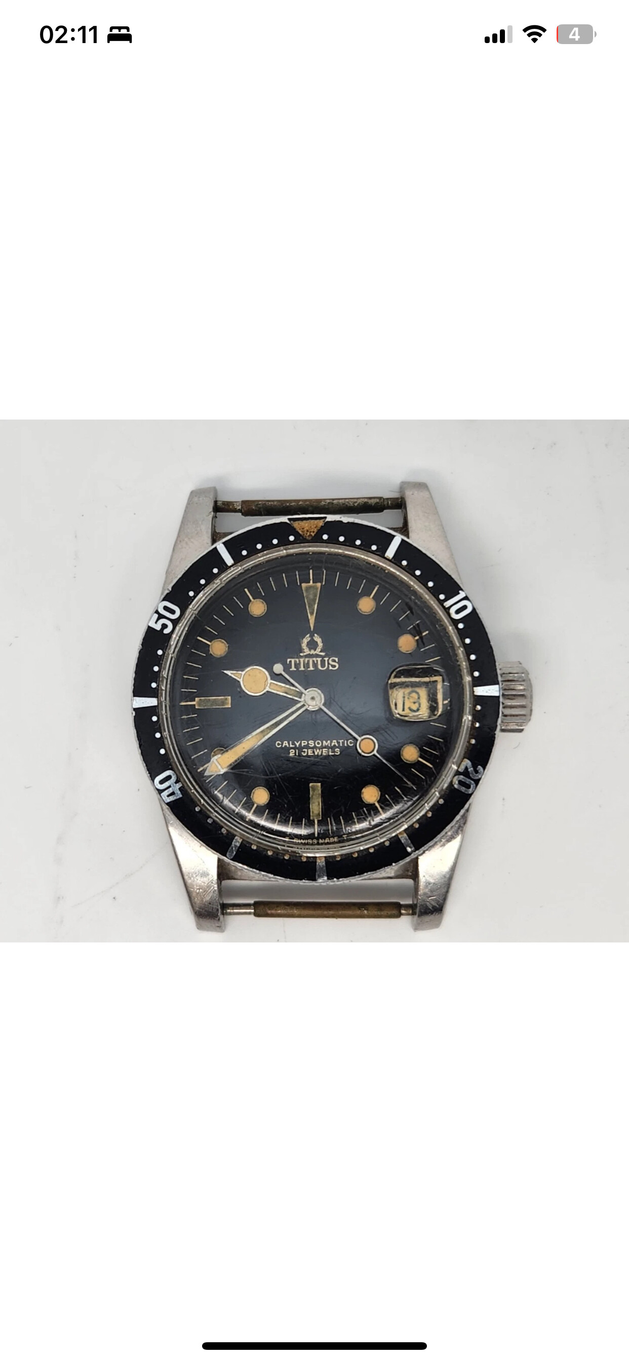Een Titus Calypsomatic 7985, had in de jaren 60 een erg korte productietijd. Compleet origineel en een ongelooflijk mazzel gehad dat ik deze op de kop had getikt voor weinig.
