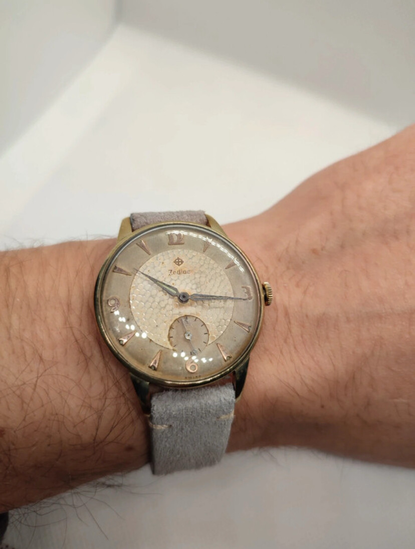Na een heel spel samen met @MeNToR komt deze mooie Zodiaco mijn kant op. Heel blij mee. Horloge moet volgens de verkoper frequent onderhouden zijn door een horlogemaker waar hij het altijd naartoe brengt. Recente service gehad. Dat gaan we zien als ik hem thuis heb.