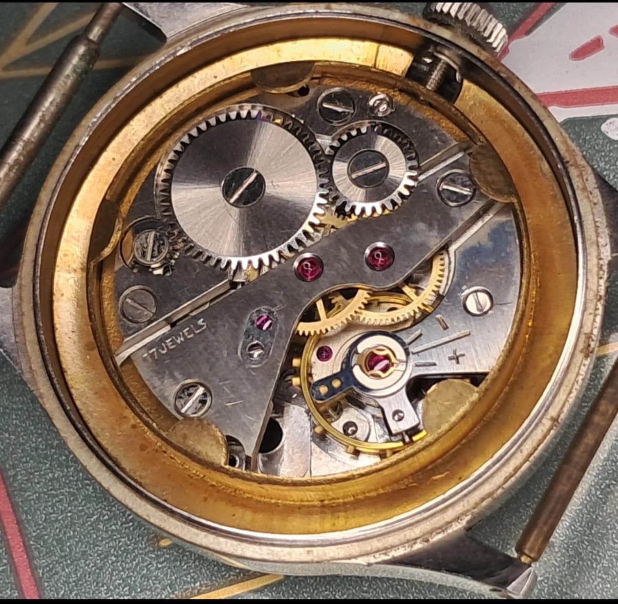 De Jeambrun 23D loopt. Ranfft zegt dat dit uurwerk uit 1965 stamt, maar ondanks dat we het allemaal een fijne, behulpzame bron vinden, is de datering het minst accuraat van die database. Dus dat vertrouw ik er niet. De Gruen 515SS - hetzelfde uurwerk - wordt gedateerd op 1960. Op Ranfft dusâŠ