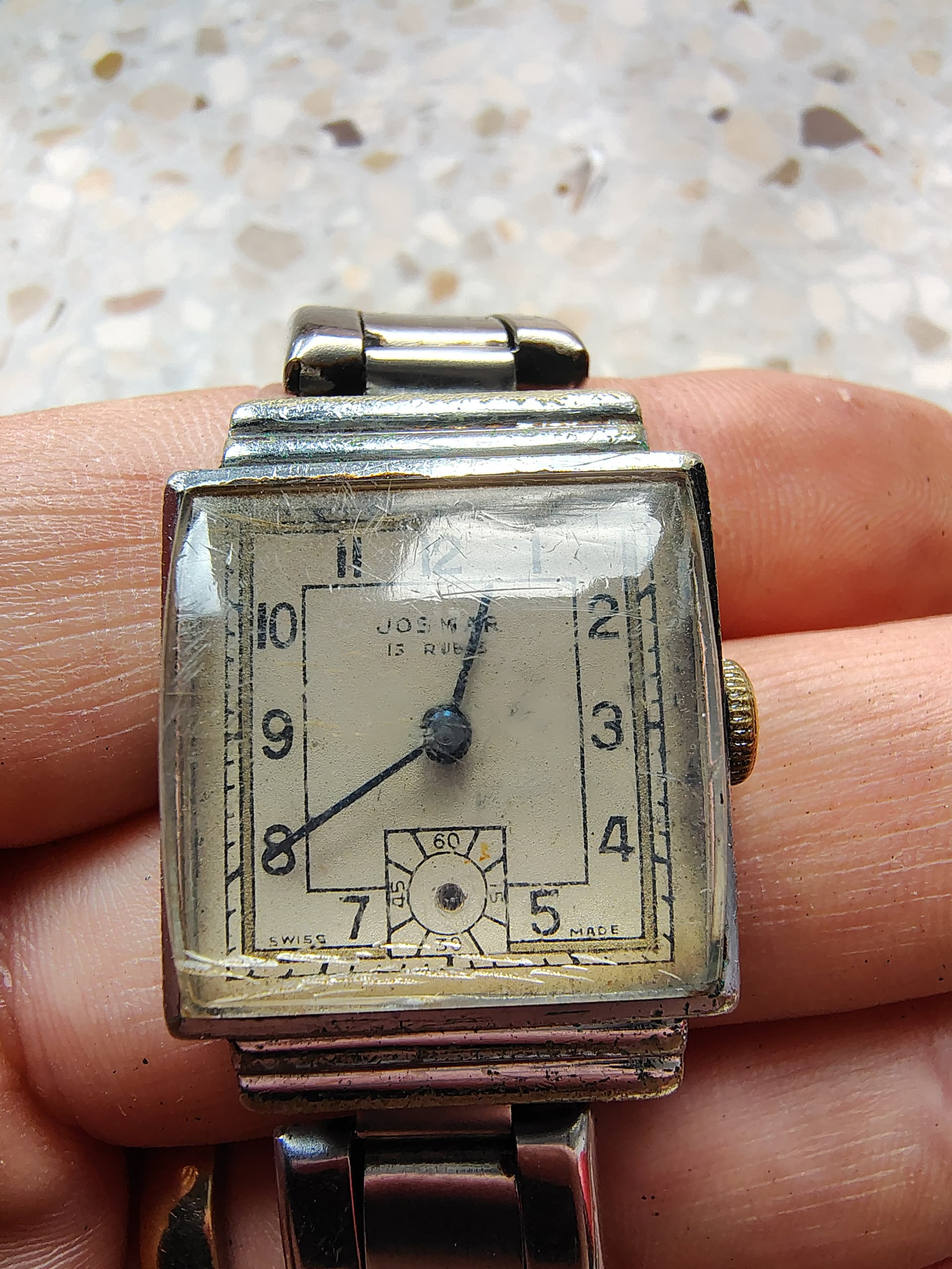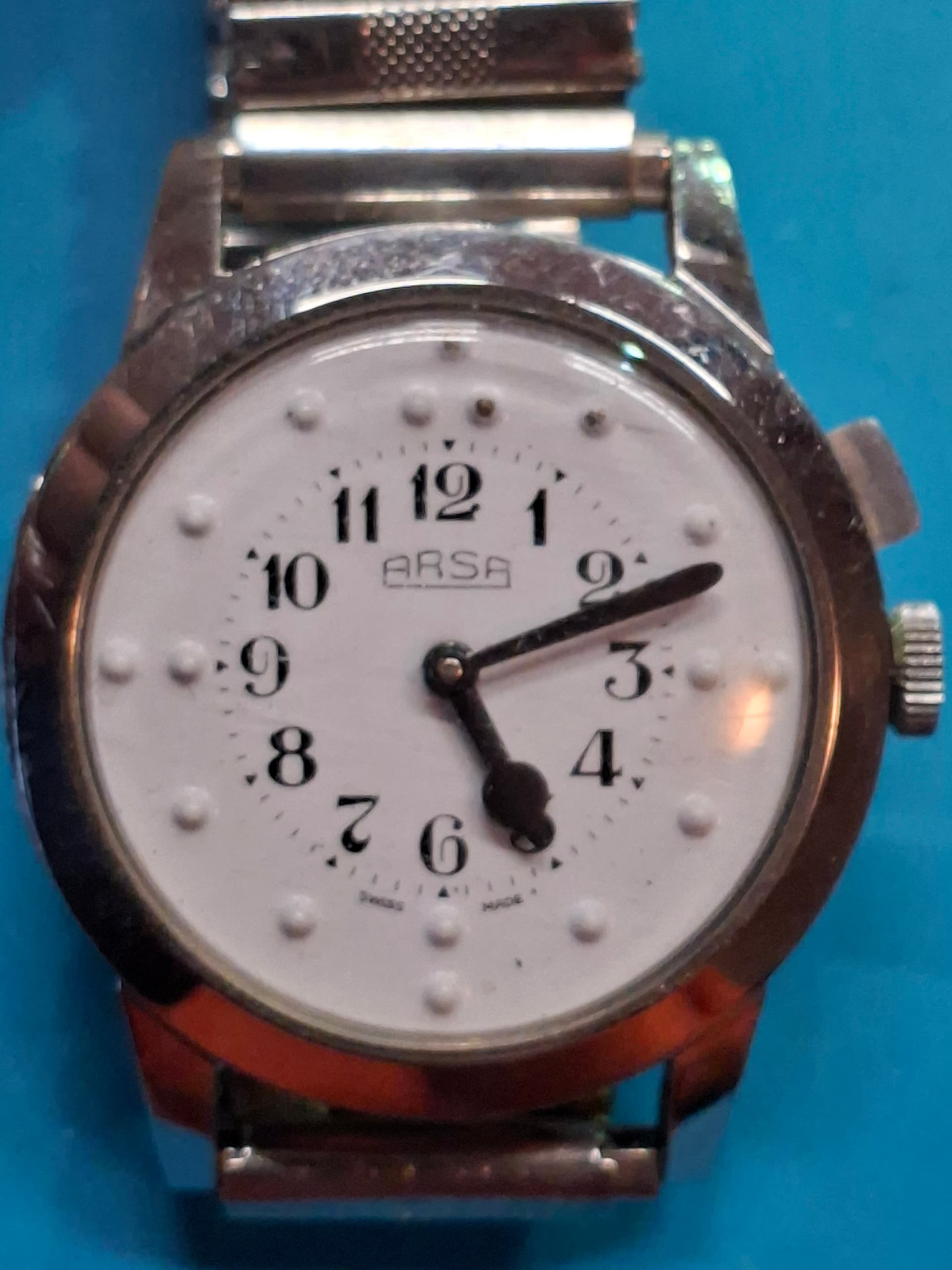 Enkel een nieuw glaasje, dat zonet binnen kwam, en een qua breedte passend bandje, maken hem al zoveel aantrekkelijker! Kast opwrijven nog, uurwerk service (werkt goed), en een leukere band…