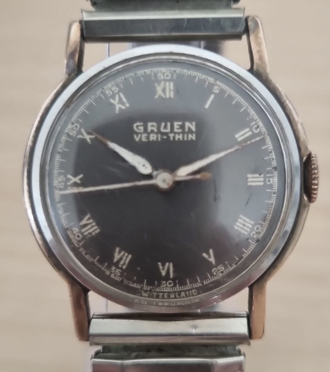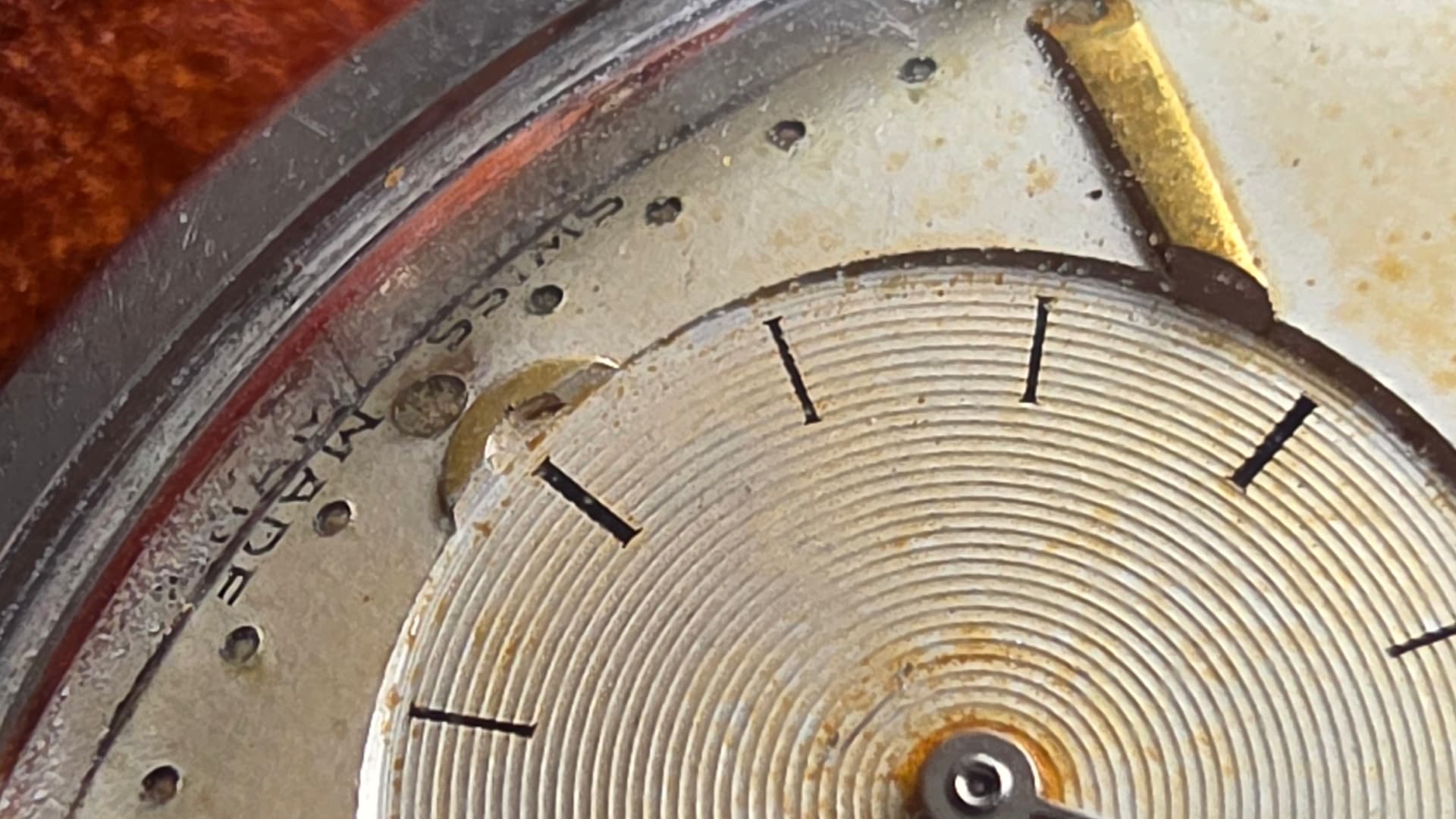 Een piepklein barstje in de plexi, misschien moet ik die vervangen. De rest ziet er zeer mooi uit, wijzers en wijzerplaat lijken helemaal nieuw, de lume is nog helemaal niet verkleurd of vlekkerig. Wat een mooi ding🤩