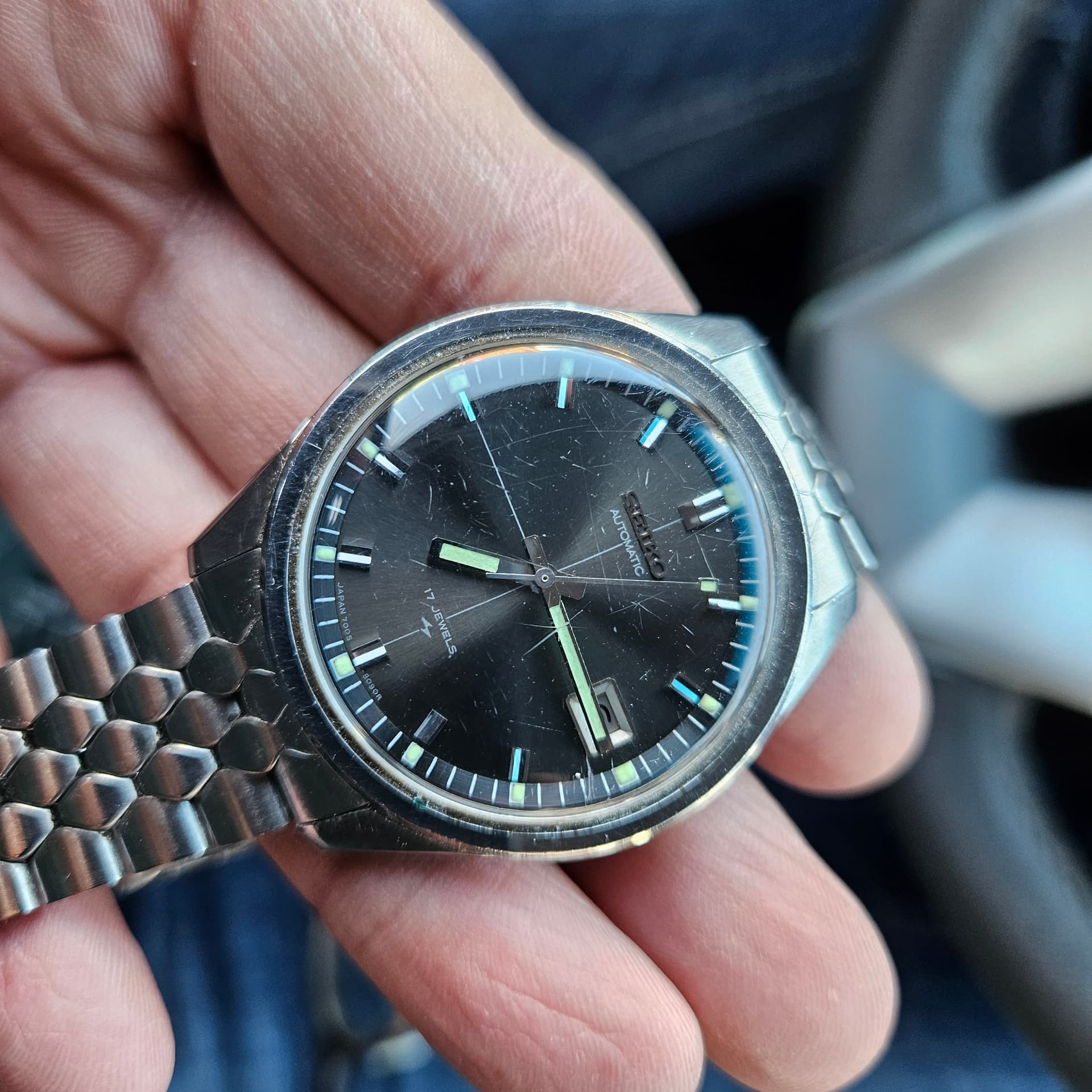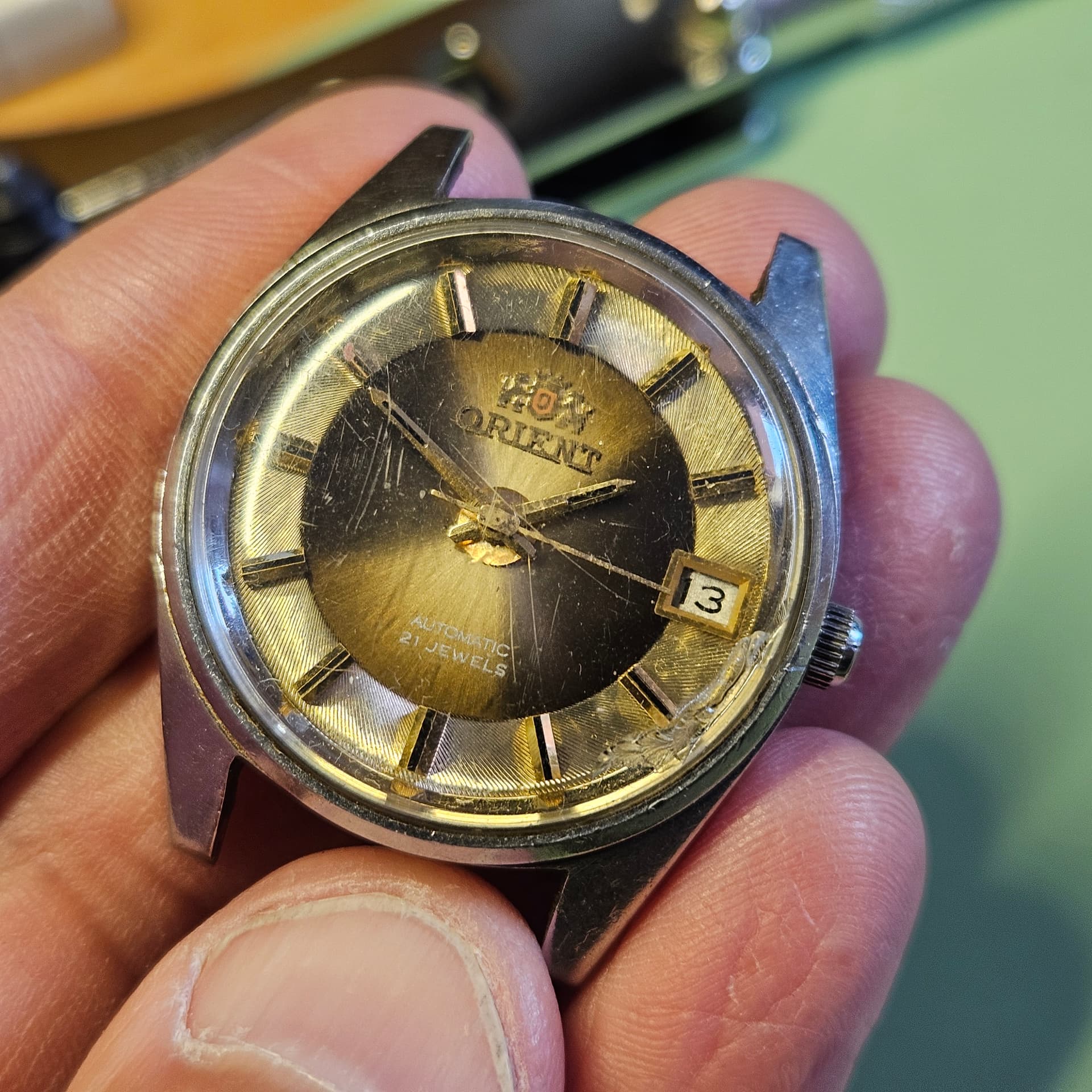 Cosmetisch zijn we heel ver gekomen. De staat is ongelooflijk goed. En een paar diepe krassen in de plexi kon ik toch helemaal weg schuren. Hij is ook helemaal schoon, want hij was heel vuil. Hij loopt nog niet goed. Zichtbaar lage amplitude en ca 300sec achter per dag. De balansveer is wel goed dus het uurwerk zal ook schoongemaakt moeten worden. Dat komt nog wel😅