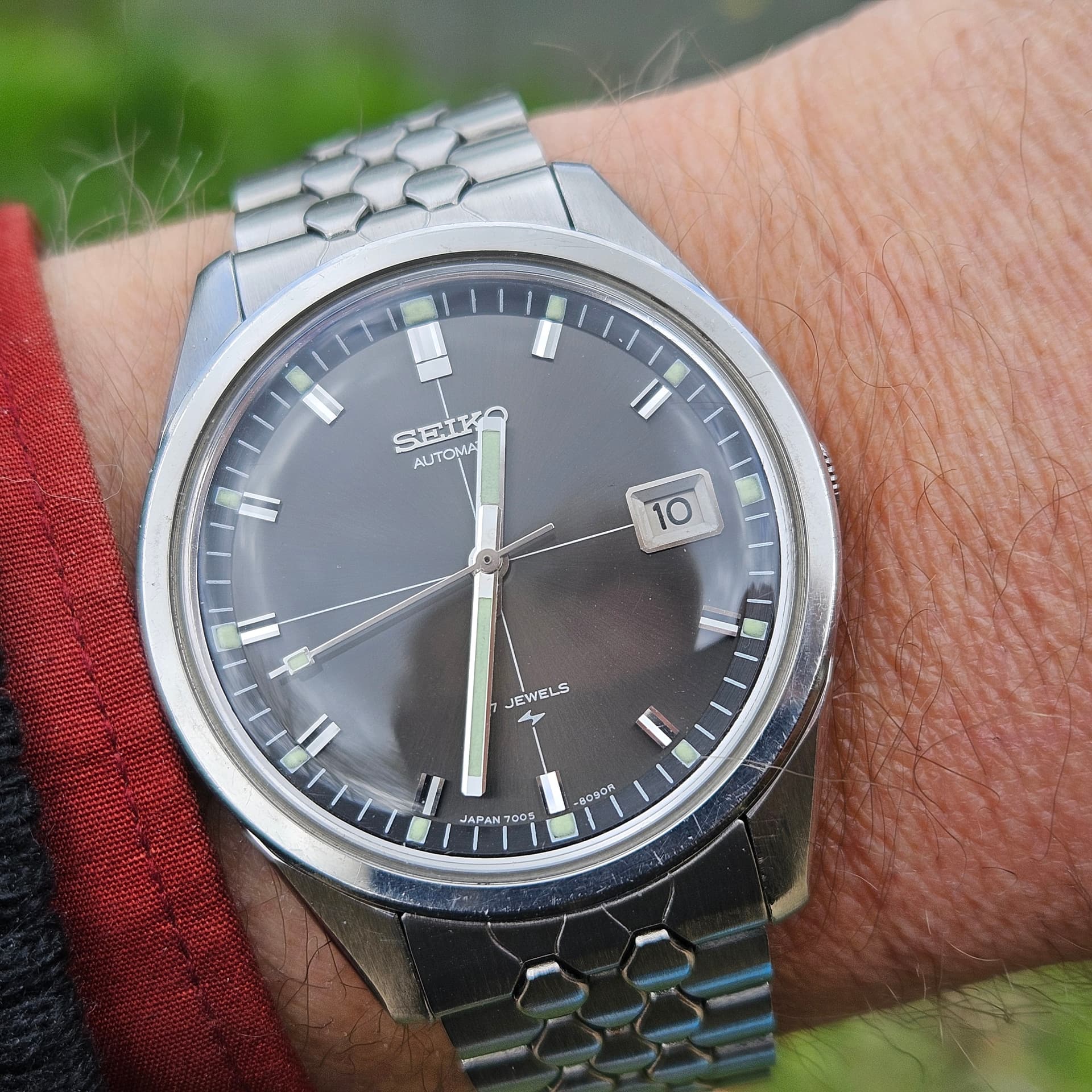 Ik vind hem ook geweldig mooi. Dit design komt ook voor bij een Sportsmatic van rond 1968 ofzo. Ik heb de link nu even niet bij de hand maar als je googlet op Seiko 7005-8062, dan kom je een heel mooi verhaal over dit model tegen. De bovengenoemde teleurstellingen hebben gemaakt dat ik het even iets rustiger aan ga doen maar een aantal heel recente aanwinsten zijn echt prachtig, daar ga ik maar eens even lekker van genieten.