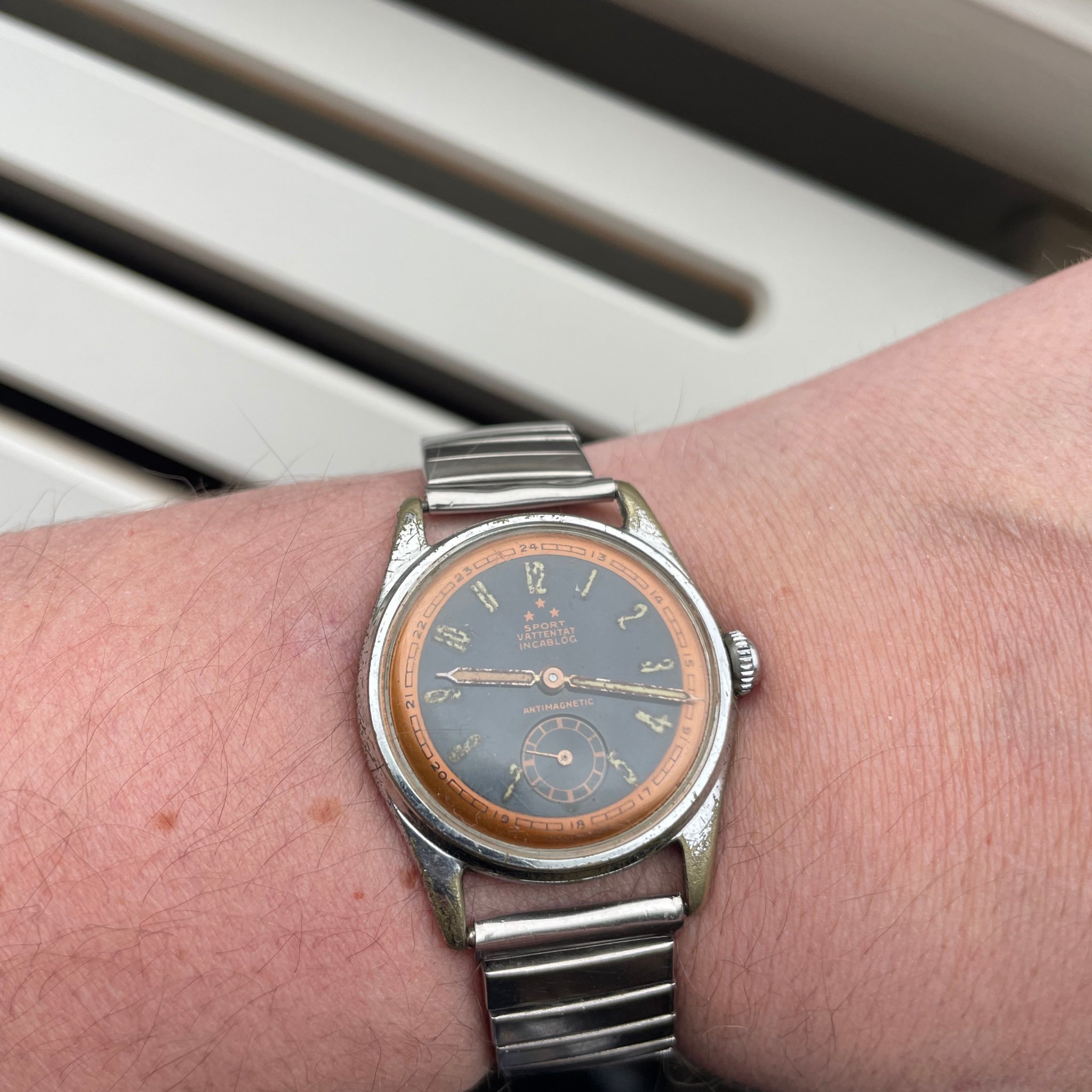 Hij loopt dus wel, maar bij het zetten van het uur draait de minutenwijzer niet mee. Dag verspringt niet, de datum wel.