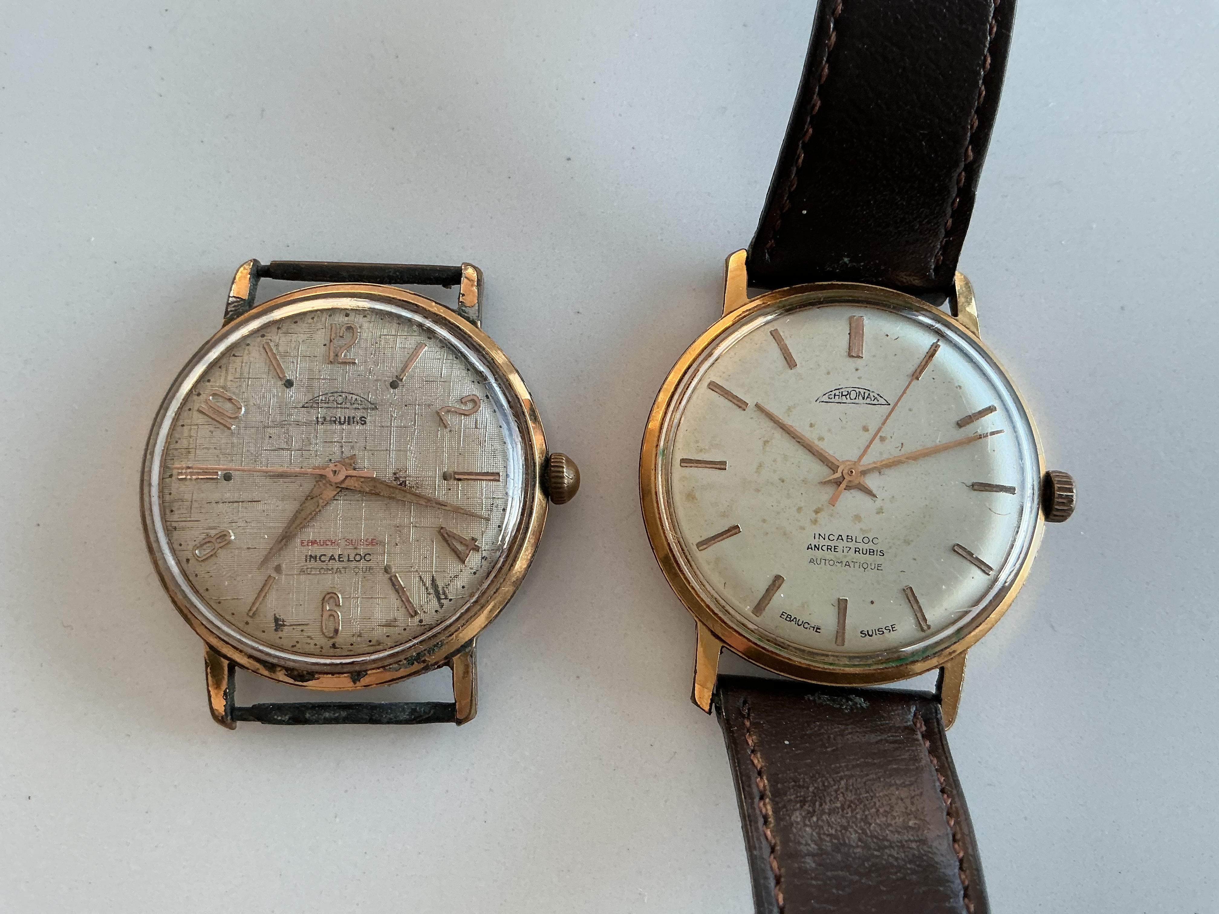 Broer en zus Chronax. Ik hoopte stiekem op bumperuurwerkjes maar het zijn ETA 2459 automaatjes.