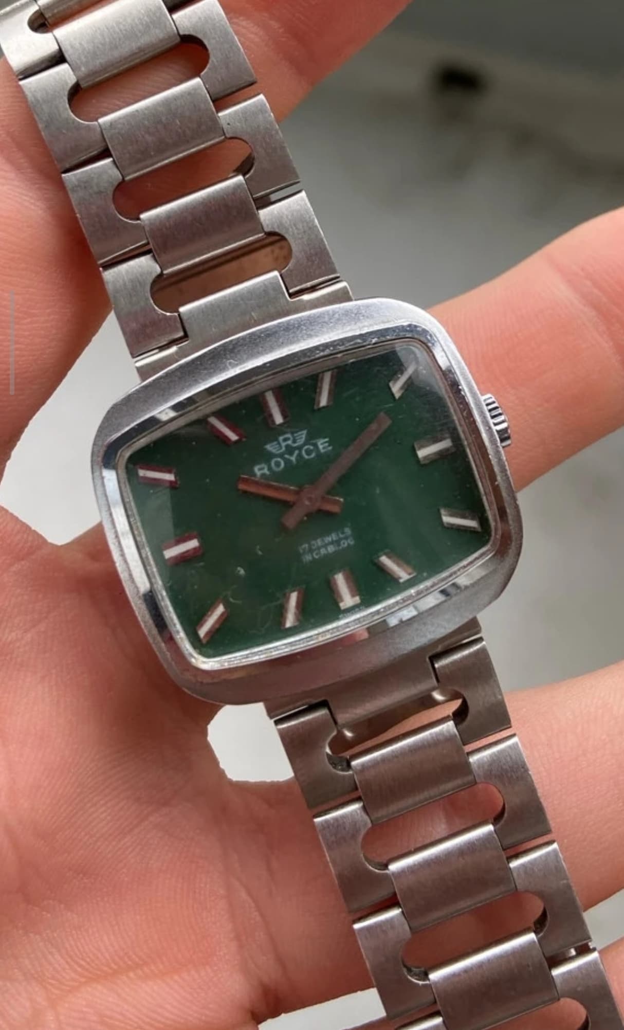 Kleur en sunburst-effect van deze wijzerplaat zijn wel bijzonder mooi. In nieuw- of mint staat zou deze mij misschien wel hebben kunnen overtuigen😊