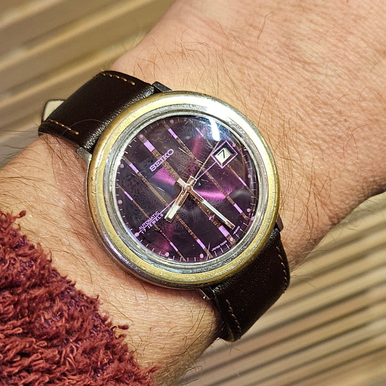 Ik denk zowaar dat je gelijk hebt. De wijzerplaat is helaas niet moeders mooiste meer, maar wie weet kom ik nog eens een mooiere tegen. Blijft een leuke, tamelijk zeldzame 7005.
