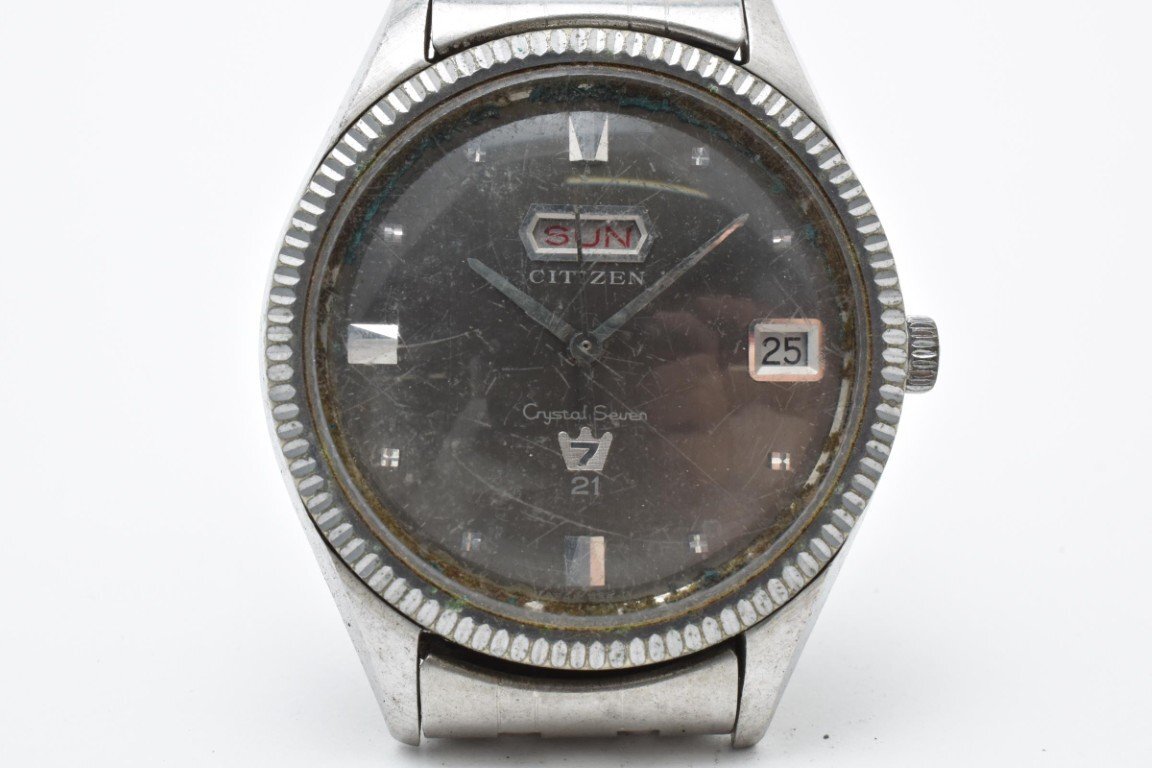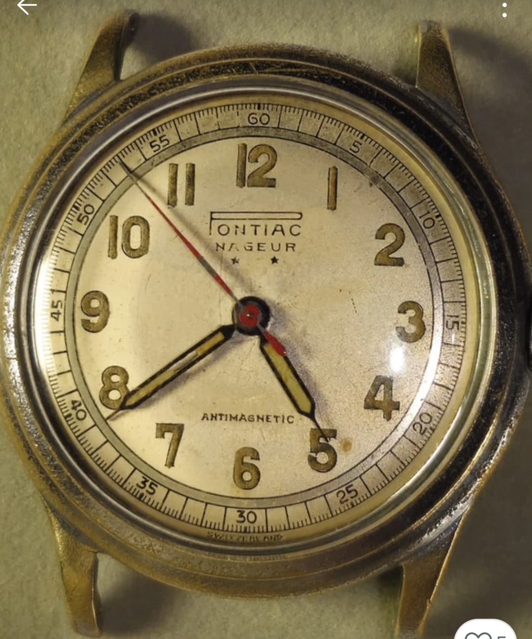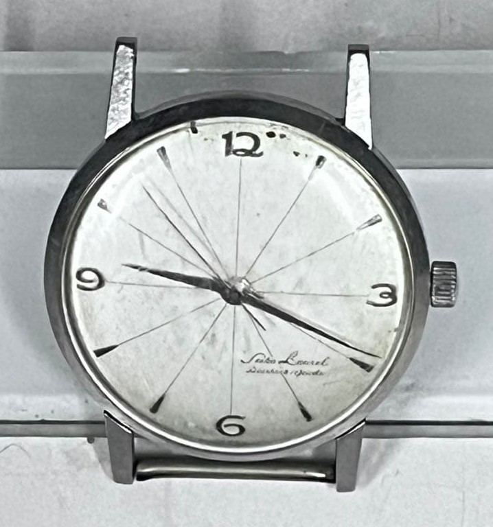 Dit horloge met lampje is knetterzeldzaam. Maar-zoals vaak- : de accu heeft gelekt en de wijzerplaat beschadigd.