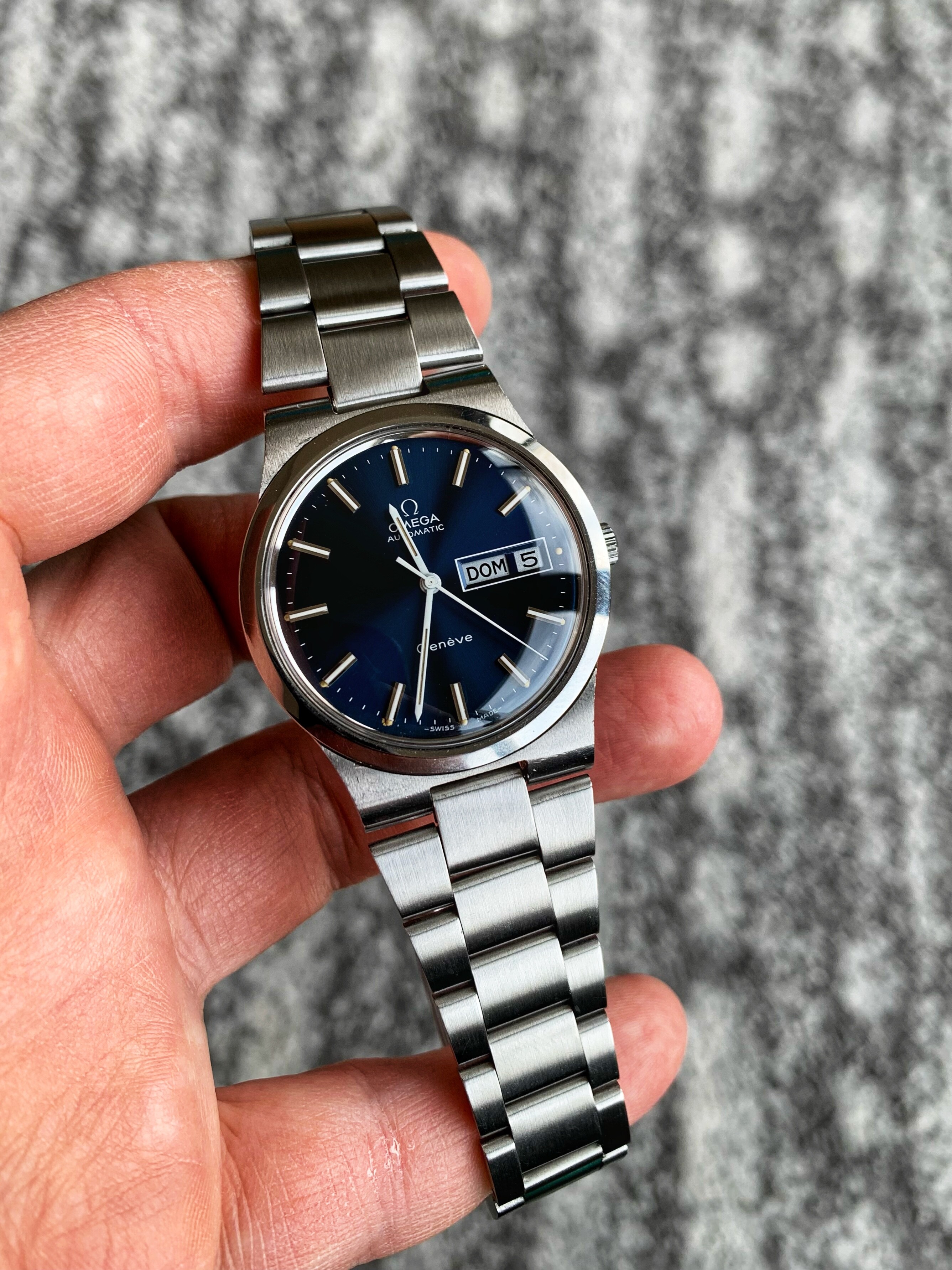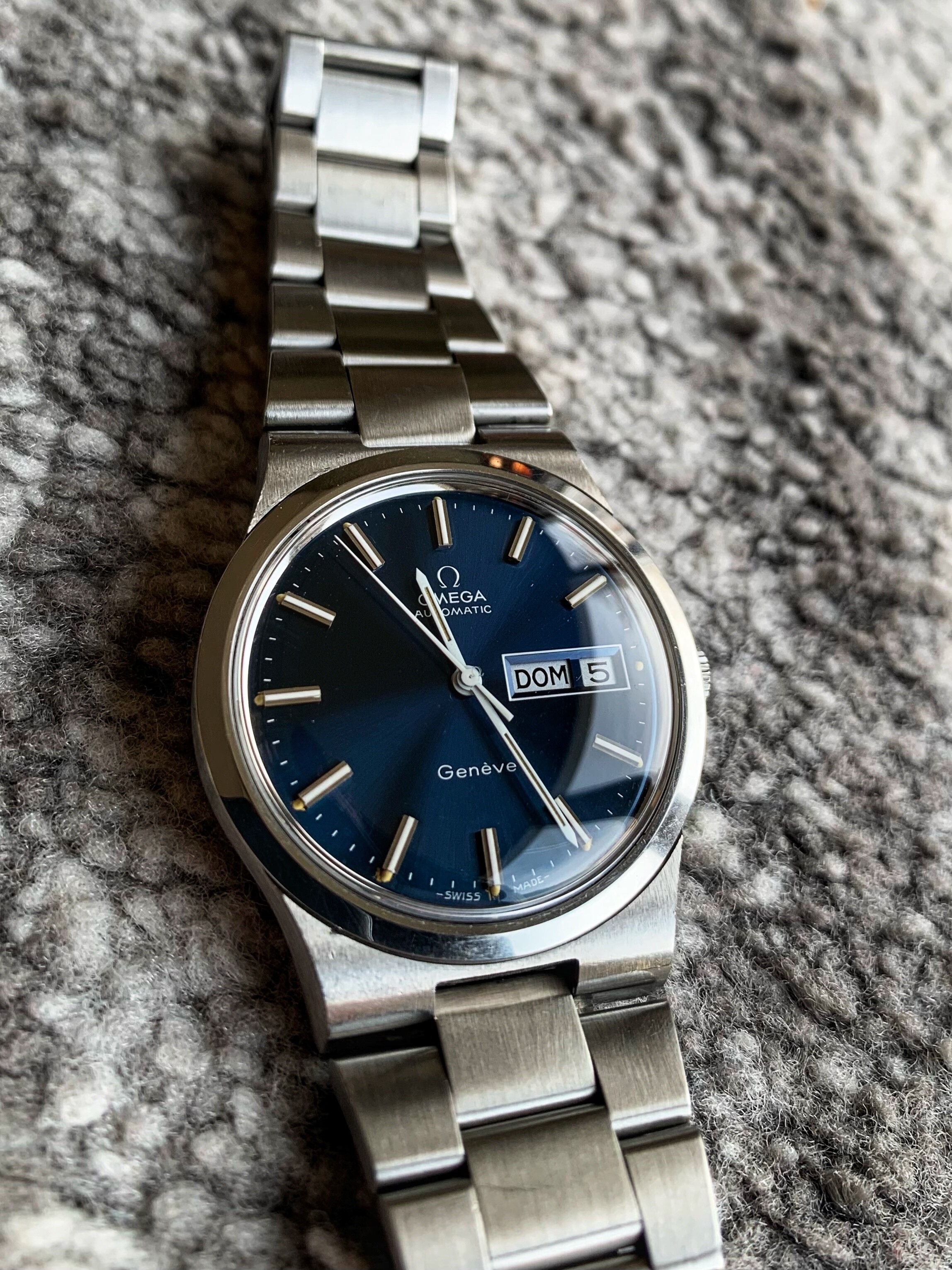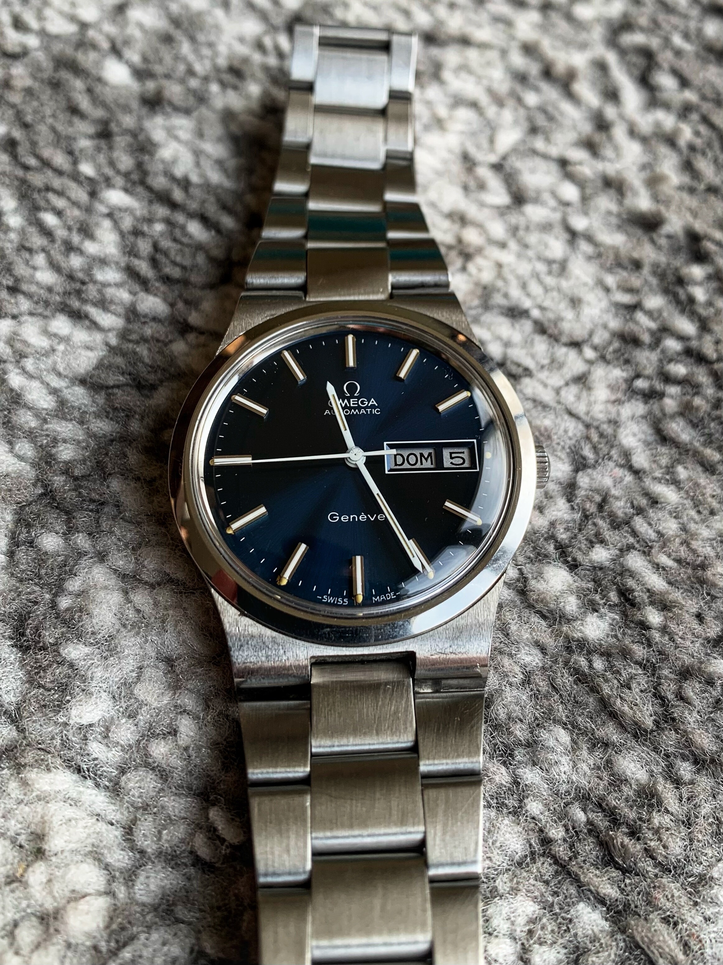Dit is hoe ik na een ruime week dragen deze heerlijke Omega Genève 166.0174 zou willen omschrijven. Het tijdloze design; de ongeëvenaarde diepblauwe sunburst wijzerplaat; de daarmee heerlijk contrasterende witte wijzers; de fantastisch bijna NOS staat van de bracelet en kast, de Italiaanse dag/datum aanduiding; en zo kan ik wel even doorgaan. Wat een fantastisch horloge…!